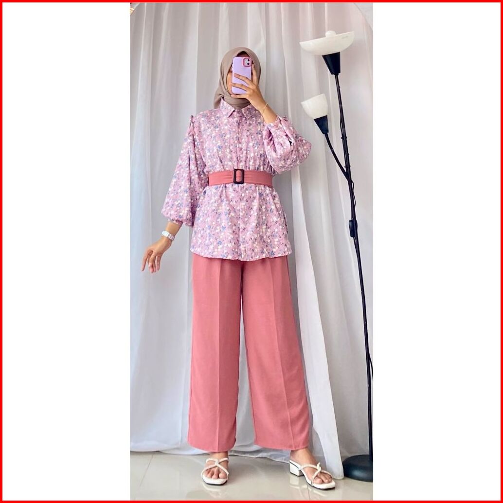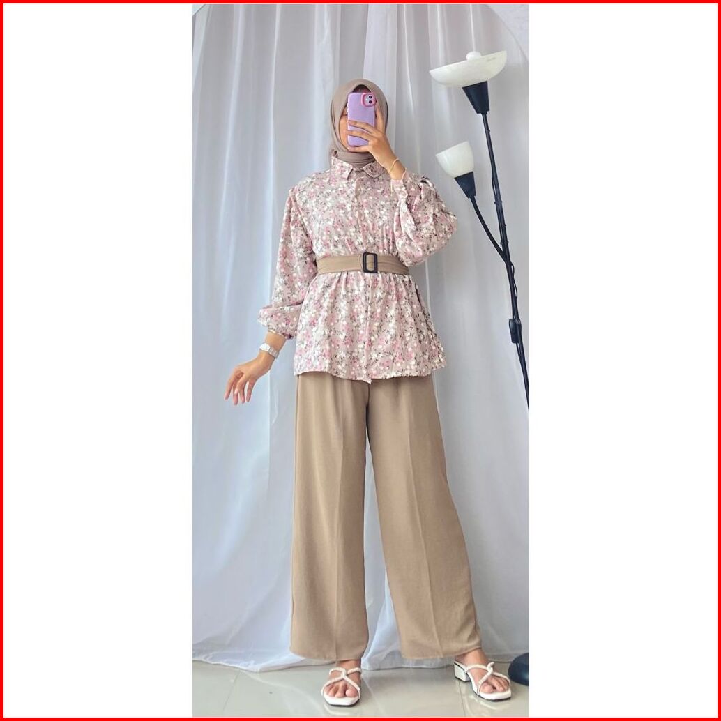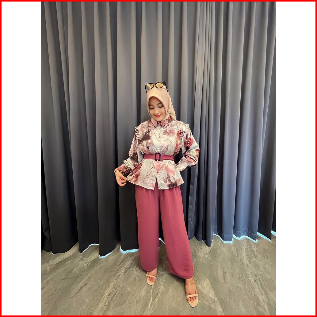 Milea One Set Setelan Shakila Mix Crinkle Free Belt Gratis Ongkir