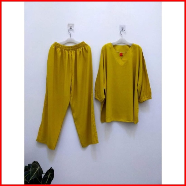 Setelan L5 Super Jumbo One Set Wanita Ld 140 Bahan Rayon Twel Impor Polos