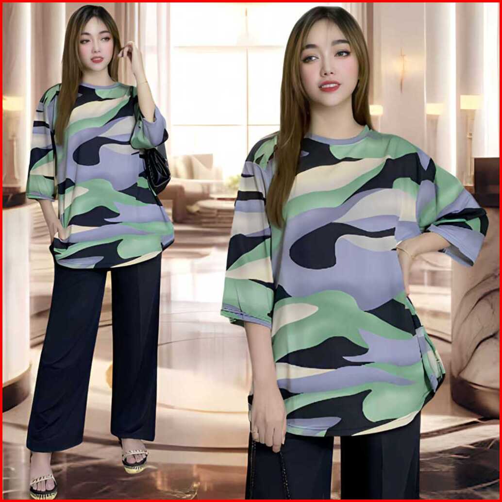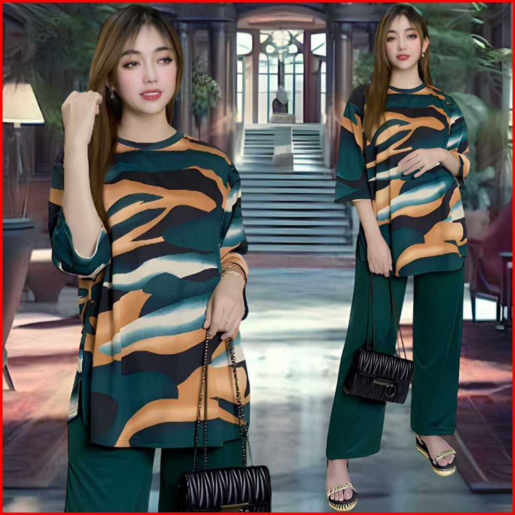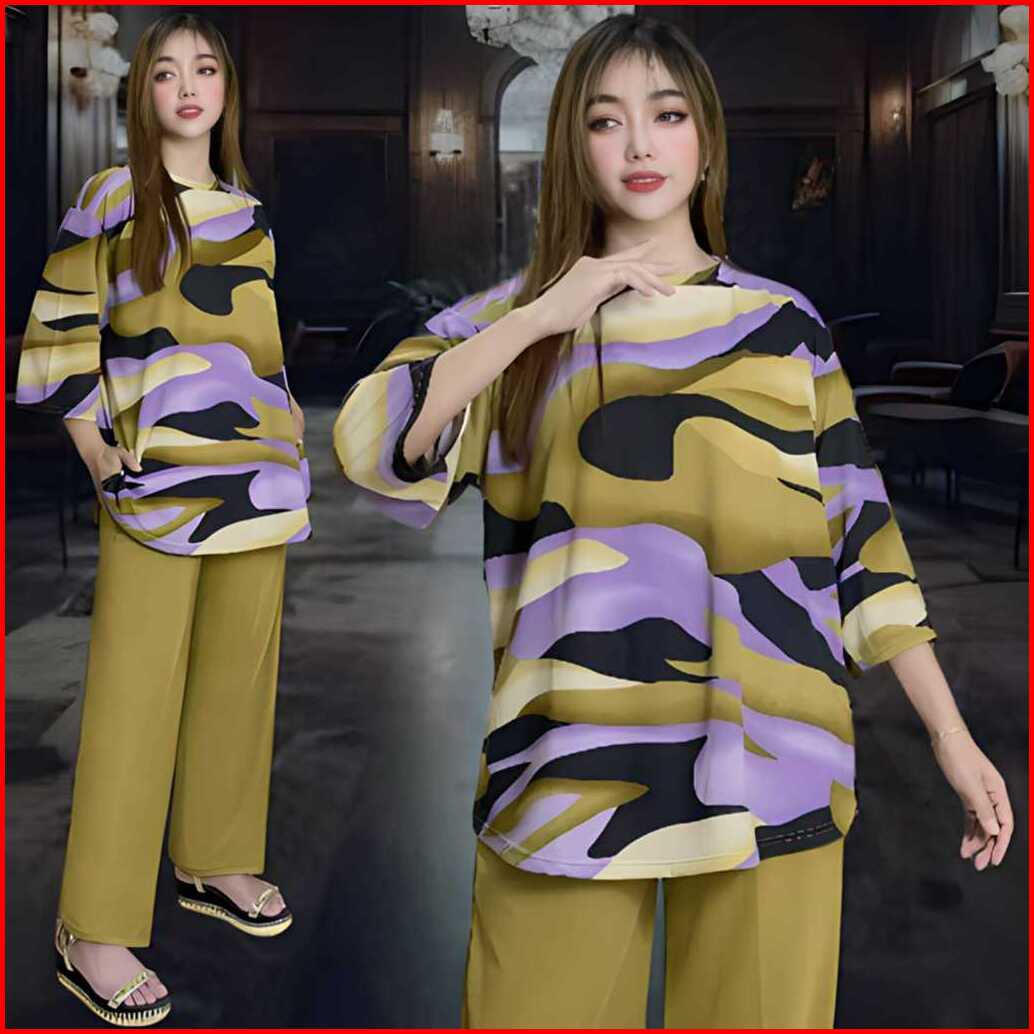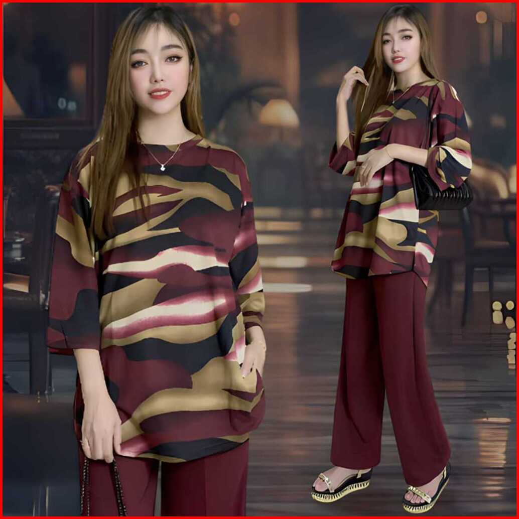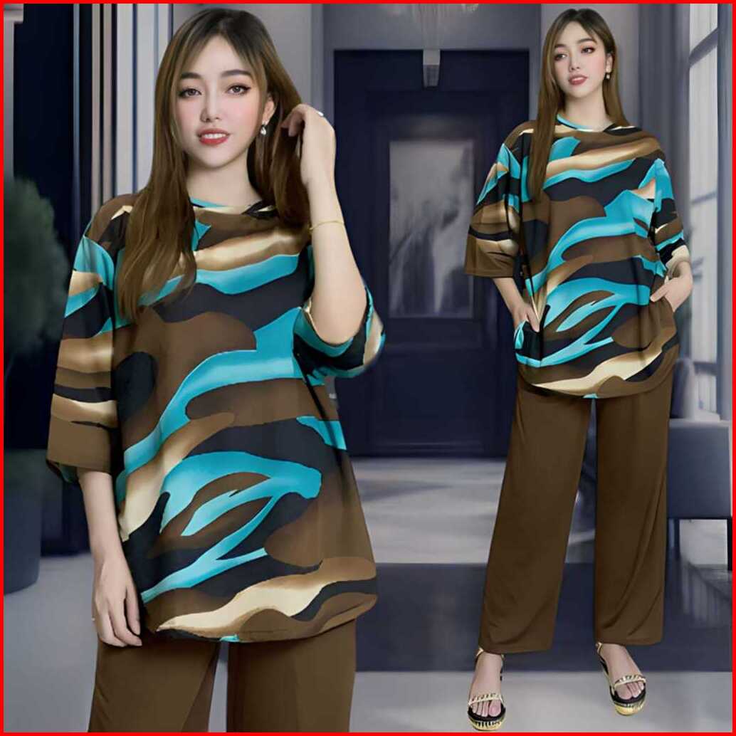 Dafania Setelan Wanita Ld 120 Celana Lurus Dan Atasan Oval Belahan Kiri Dan Kanan Oversize Wanita Celana Lurus Karet Kan