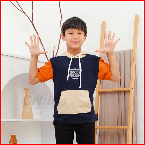 Baju Anak Laki Laki Usia 1-12 Tahun Pakai Hoodie Lengan Pendek Kombinasi Warna Glance Navy Cream
