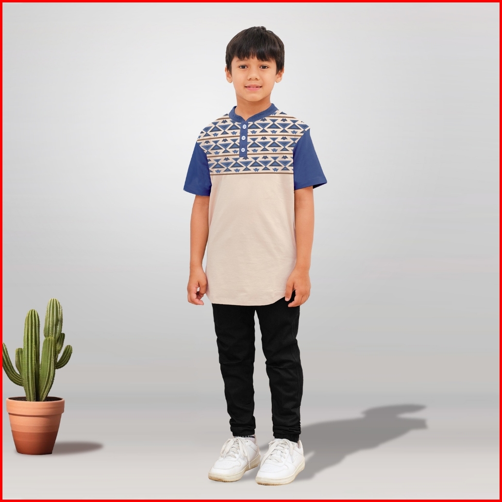 Baju Koko Anak Kaos Kurta Laki-laki Kerah Shanghai Baju Muslim Orkids Fateh Cream Blue