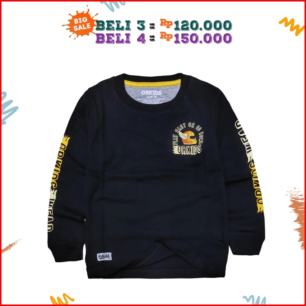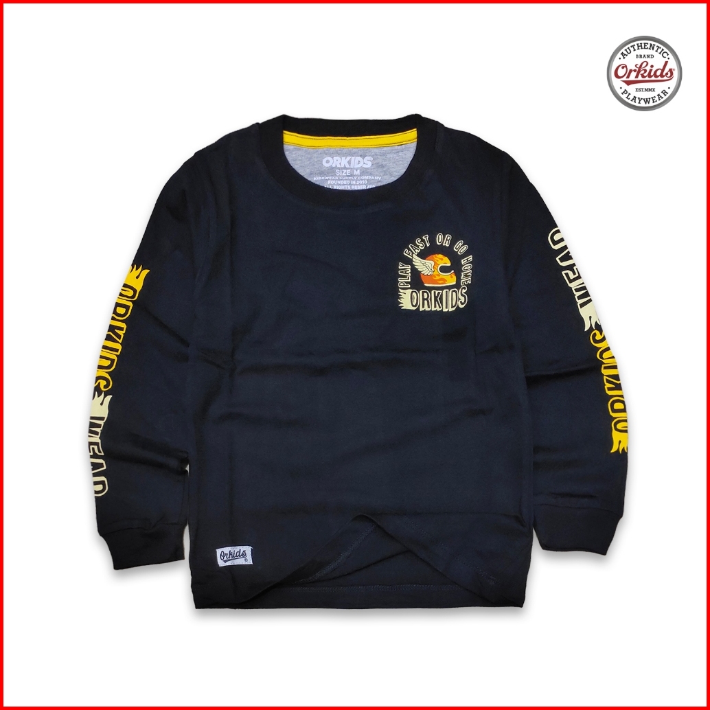 Baju Kaos Anak Lengan Panjang Laki-laki Dan Permpuan Usia 1-12 Tahun Bahan Katun 24s Playfast Black
