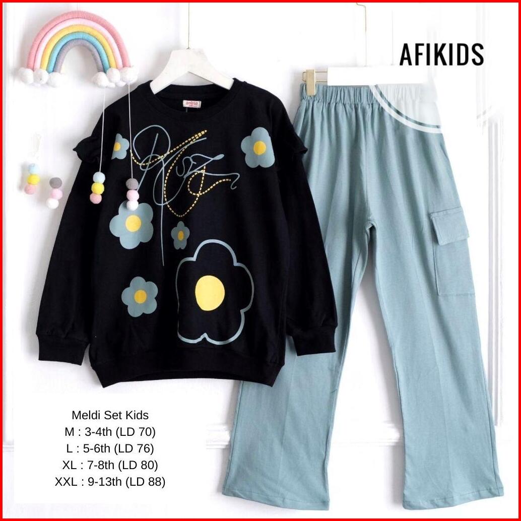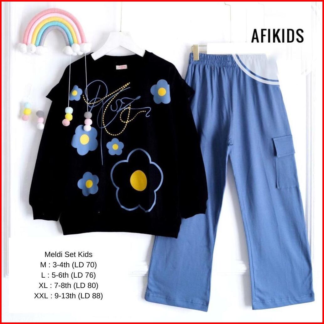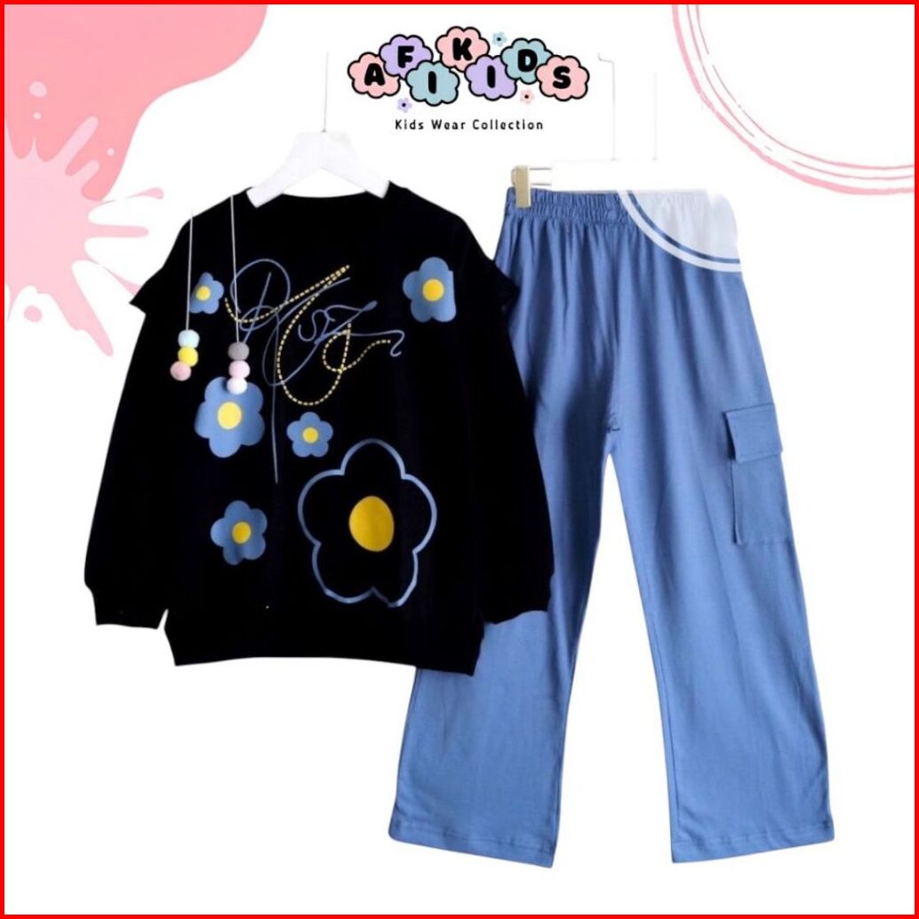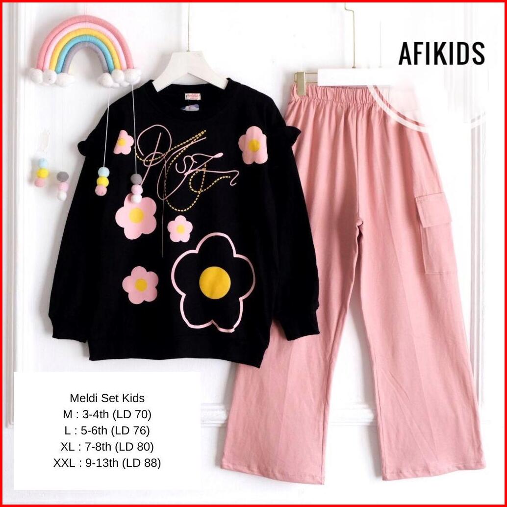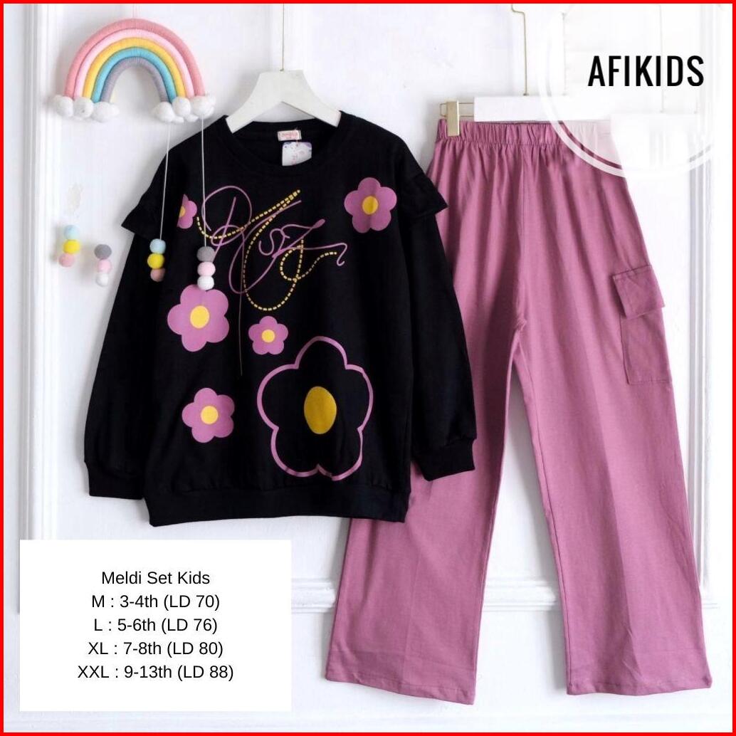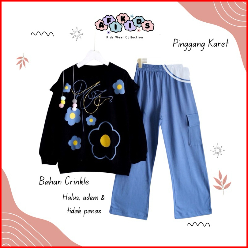 Meldi Set Kids 3thn-13thn Celana Cargo Crinkle Printing Setelan Anak Perempuan Setelan Anak Remaja Setelan Anak Remaja P