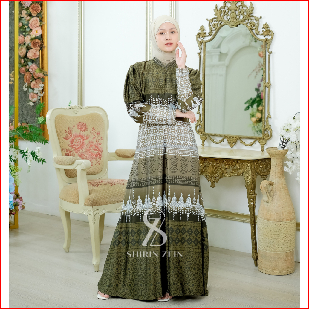 Shirinzein - Gamis Dress Annisa Wanita Dewasa Etnik Bahan Sliky Slik Premium Lebaran 2024
