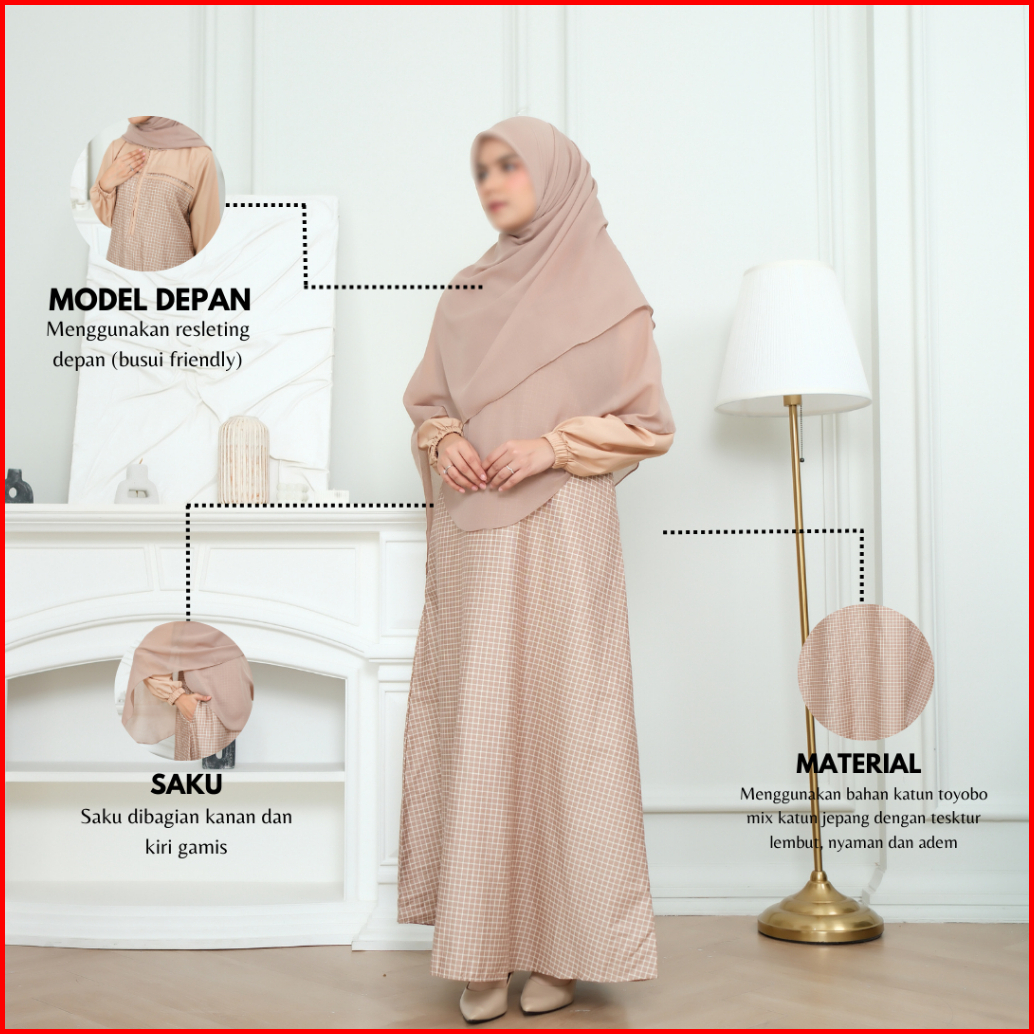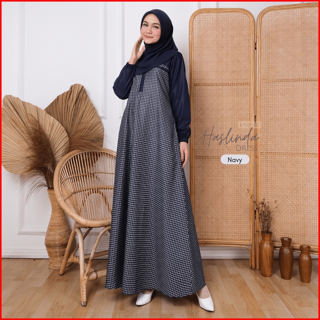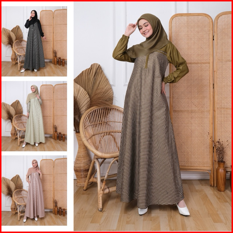 Kupnad Gamis Wanita Motif Kotak Katun Jepang Busui Friendly Adem Modern Nyaman Haslinda Dress