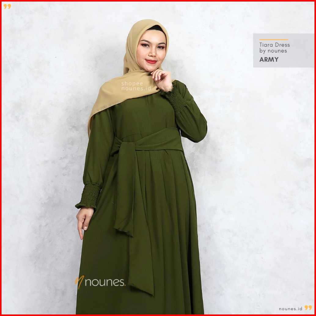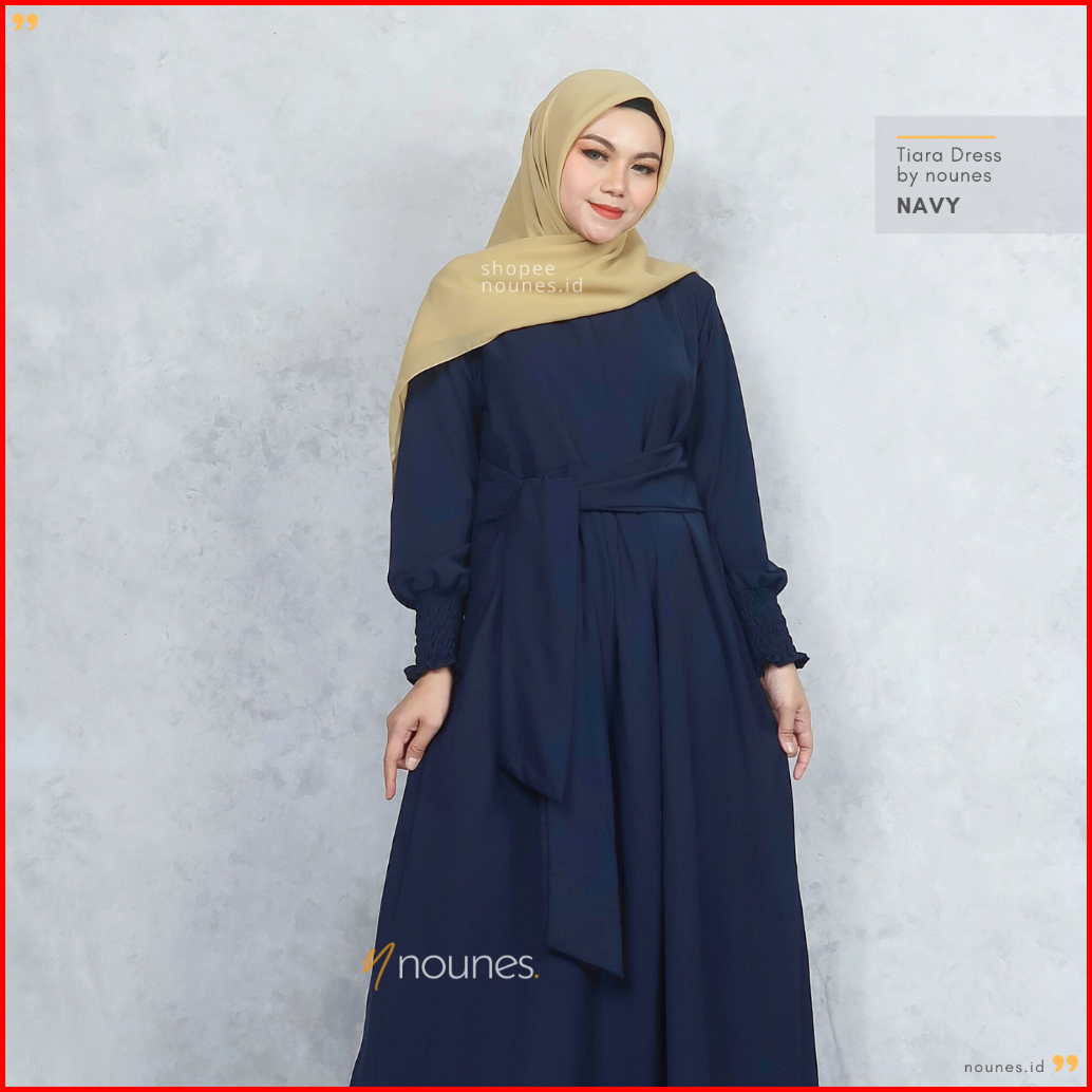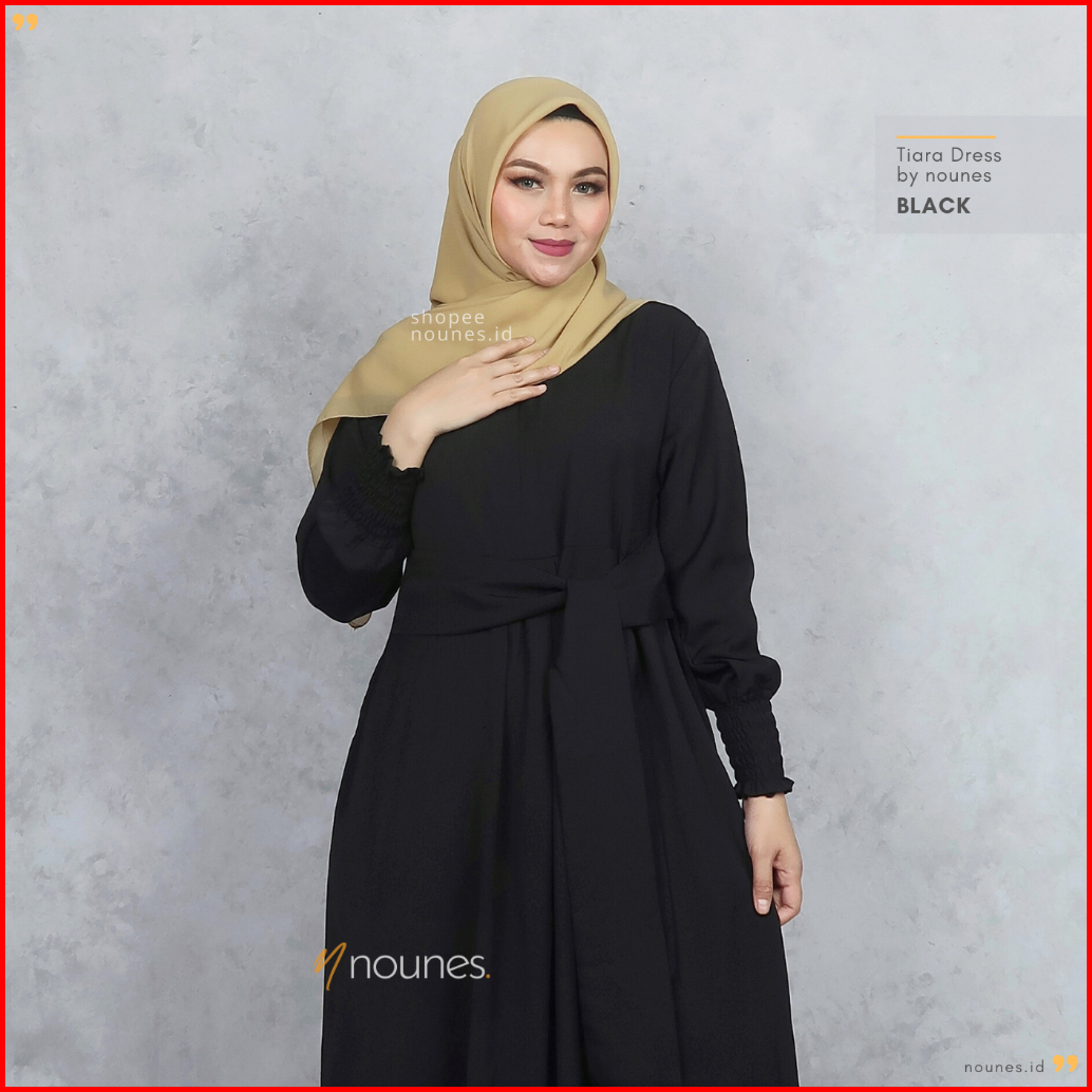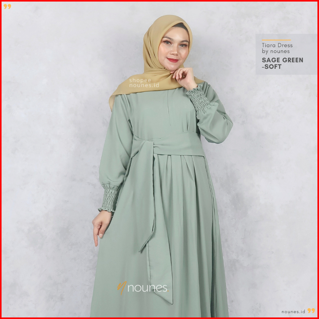 Nounes Tiara Dress Gamis Polos Wanita Matt Woolpeach Tali Pinggang Bisa Depan Samping Belakang