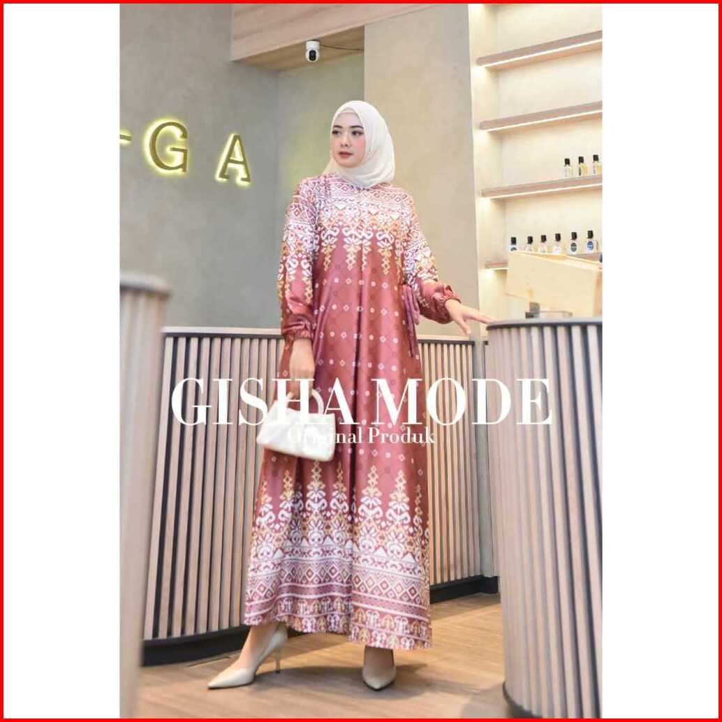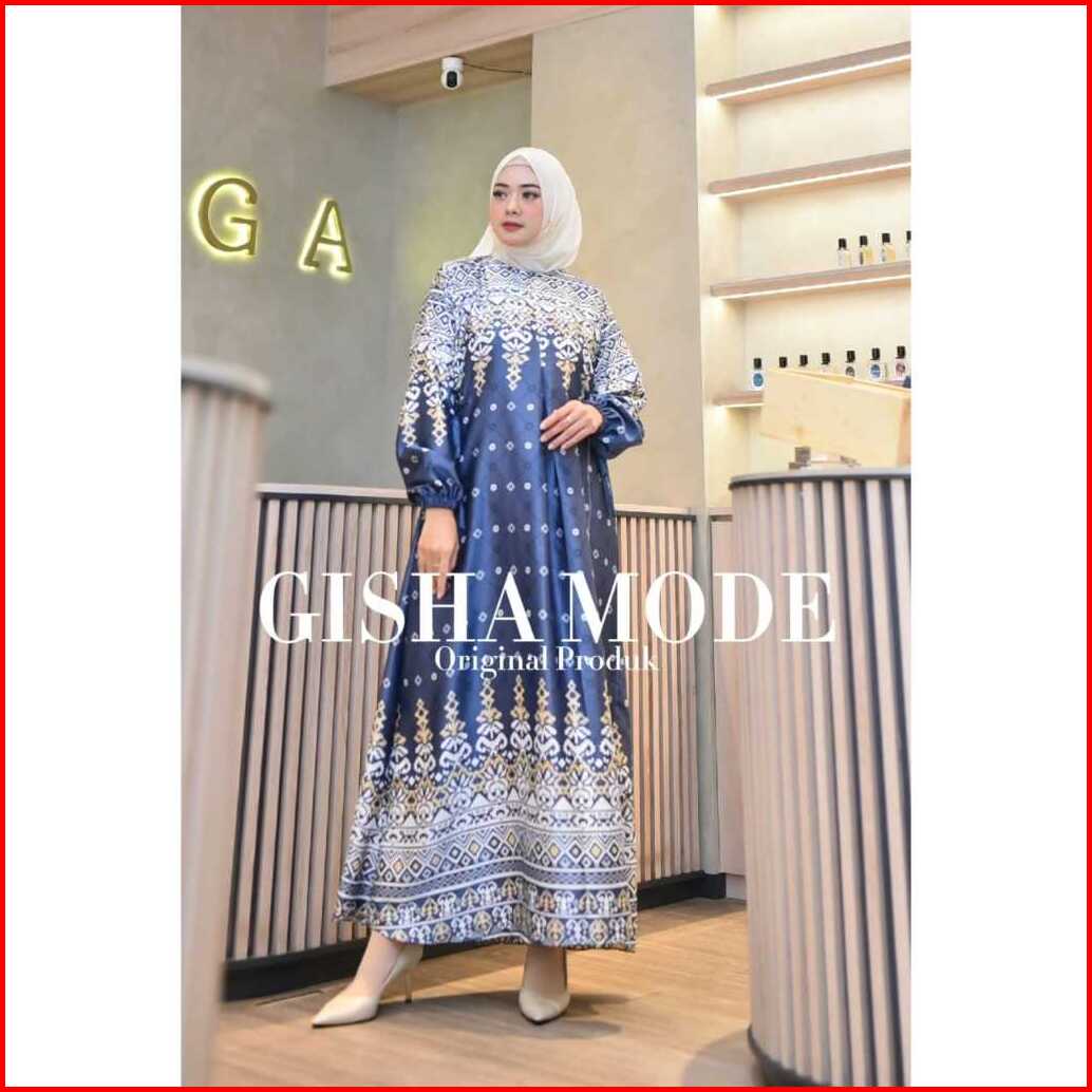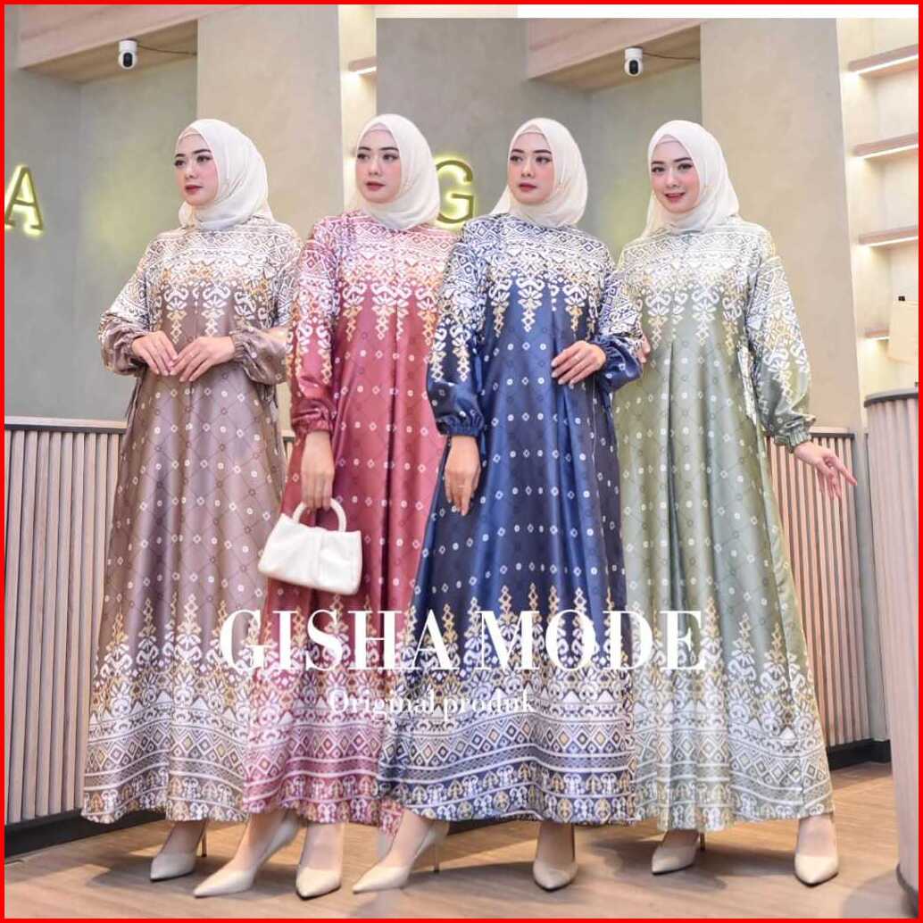 Safeeya Dress Gamis Silk Premium Gisha Mode Original Lengan Balon Gamis Motif Terbaru Dress Muslim