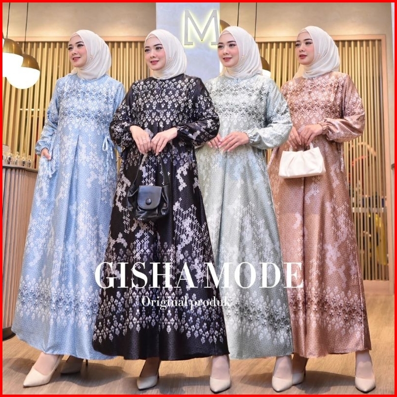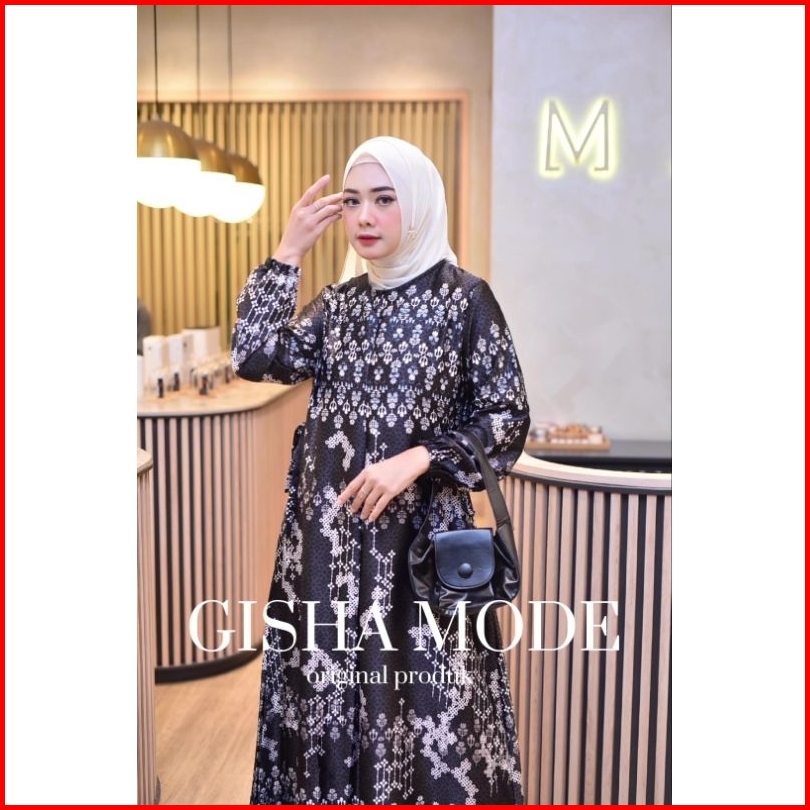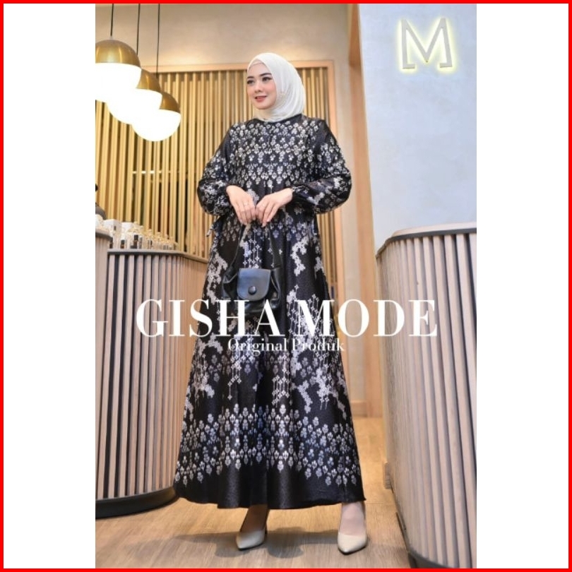 Gamis Inara Bahan Silk Premium Motif Bunga Premium Hitam Terbaru Kekinian Murah Bisa Jumbo