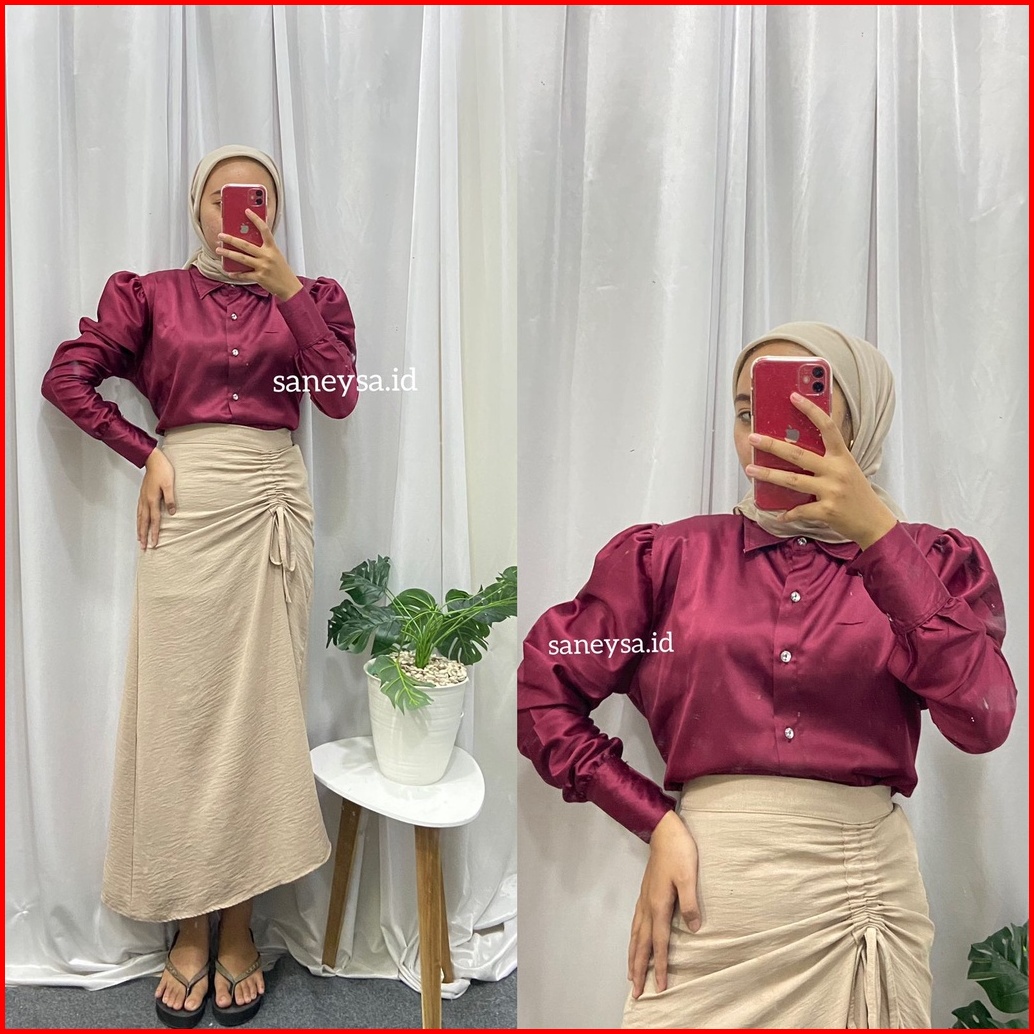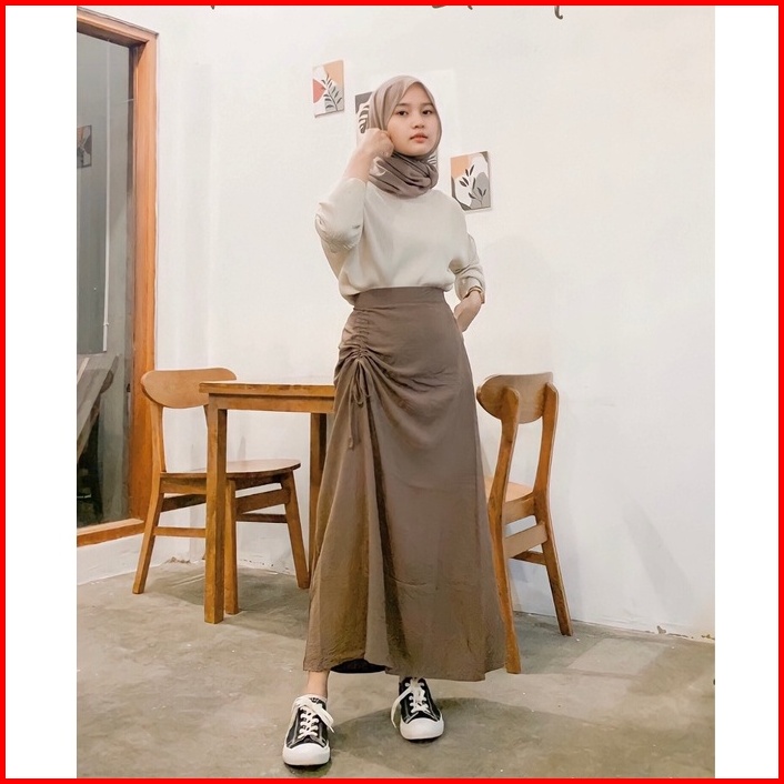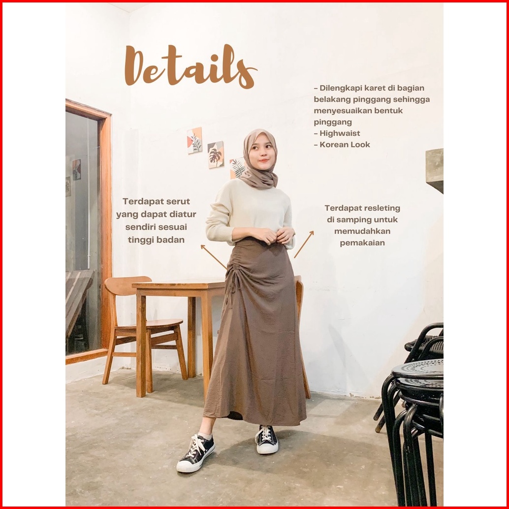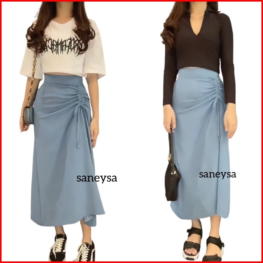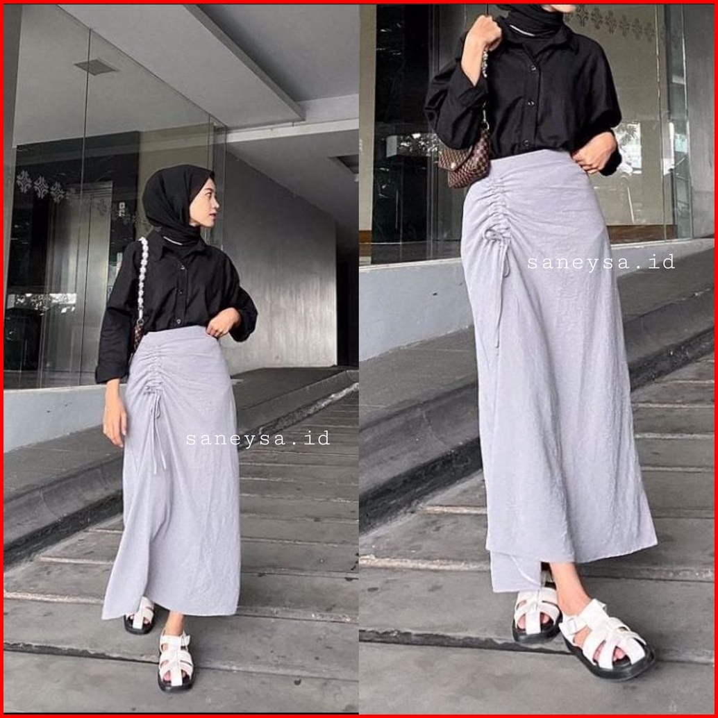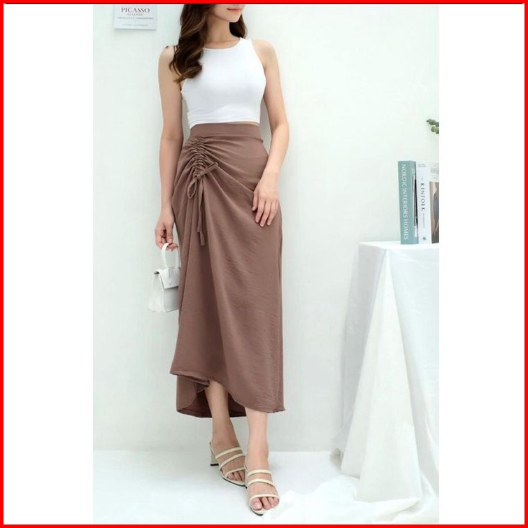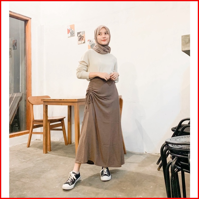 Tamara Skirt - Rok Serut Casual Korean Look - Midi Maxy Skirt - Rok Wanita Korean Terbaru - Rok Crinkle