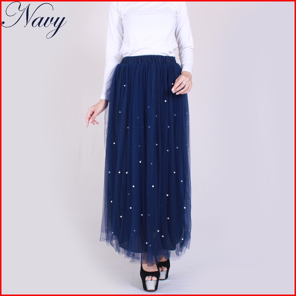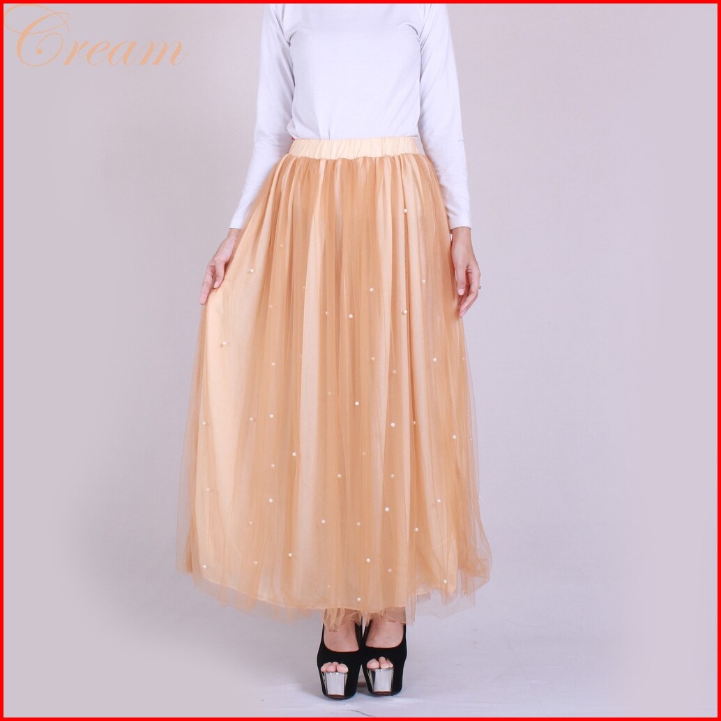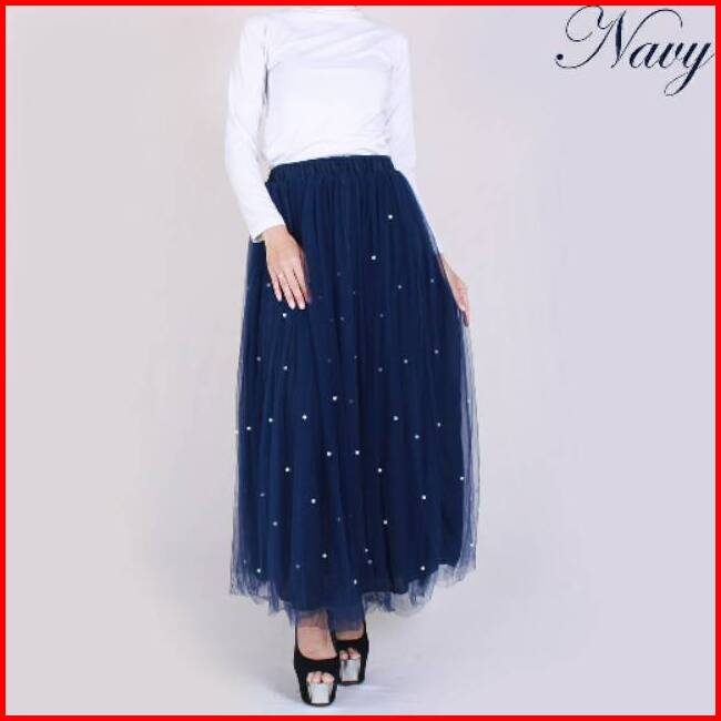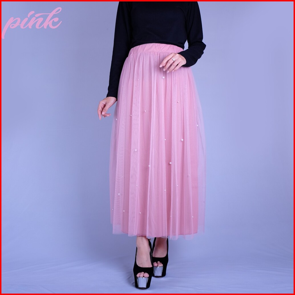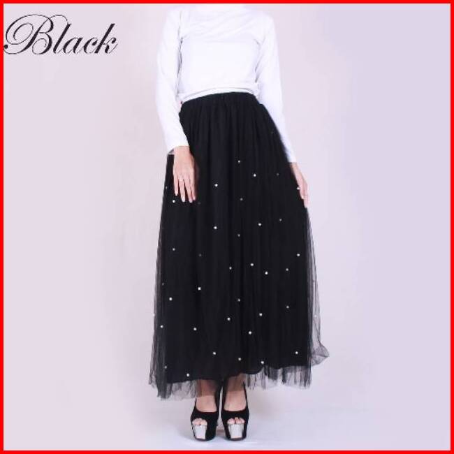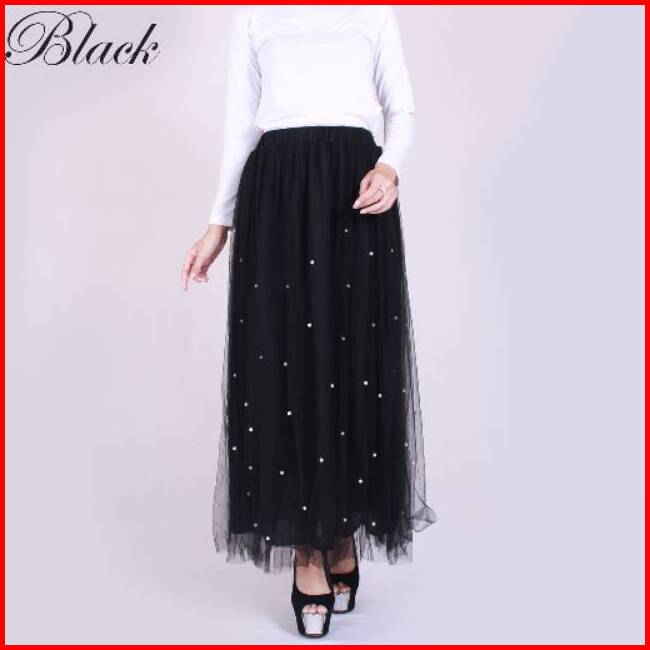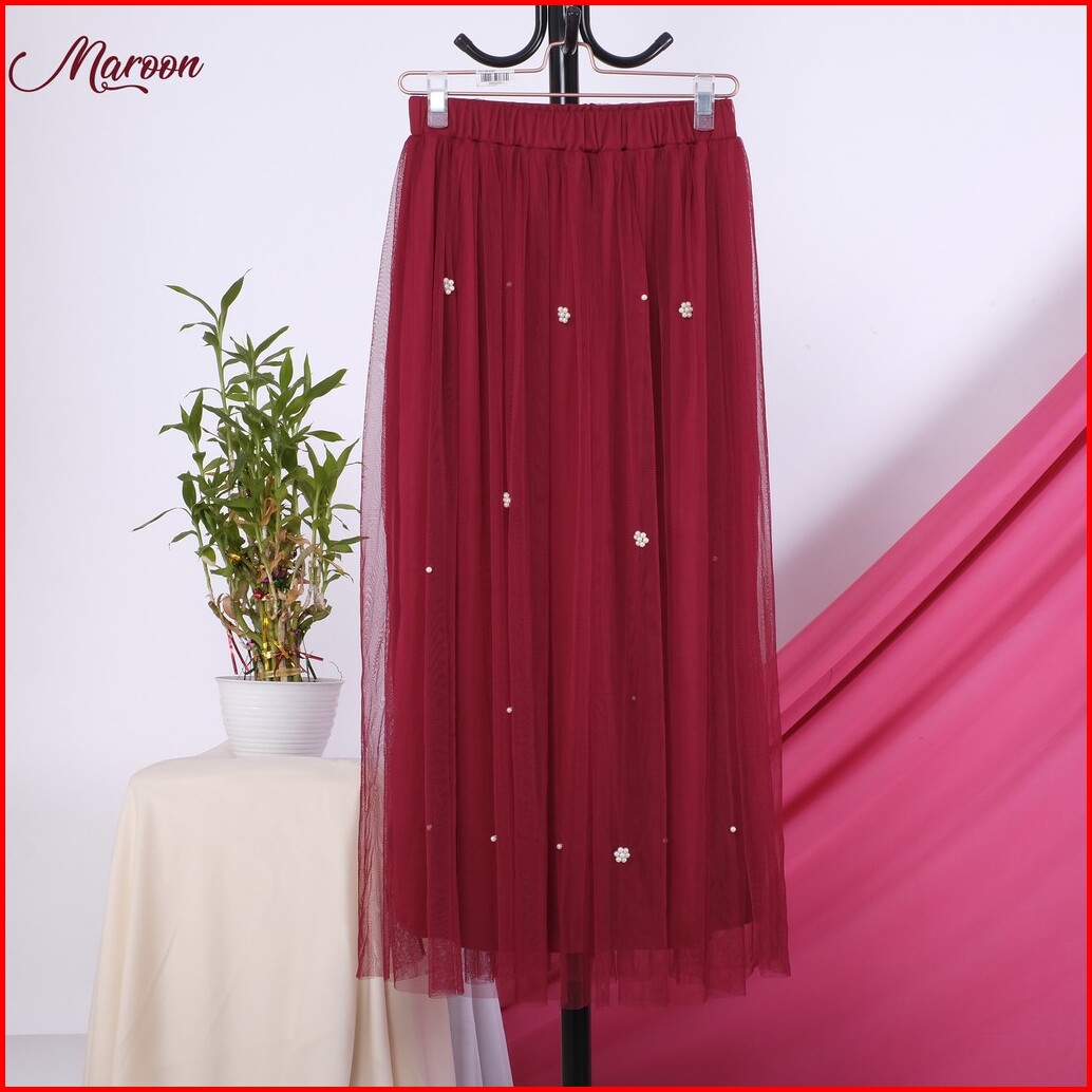 Haymeeidn - 211 Tutu Pearls Skirts Rok Tutu Wanita Aplikasi Mutiara Bawahan Kantor Premium Import