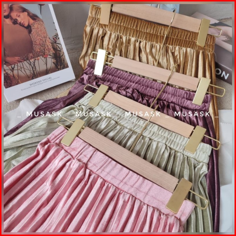 Rok Plisket Bludru Rok Velvet Rok Payung Bludru