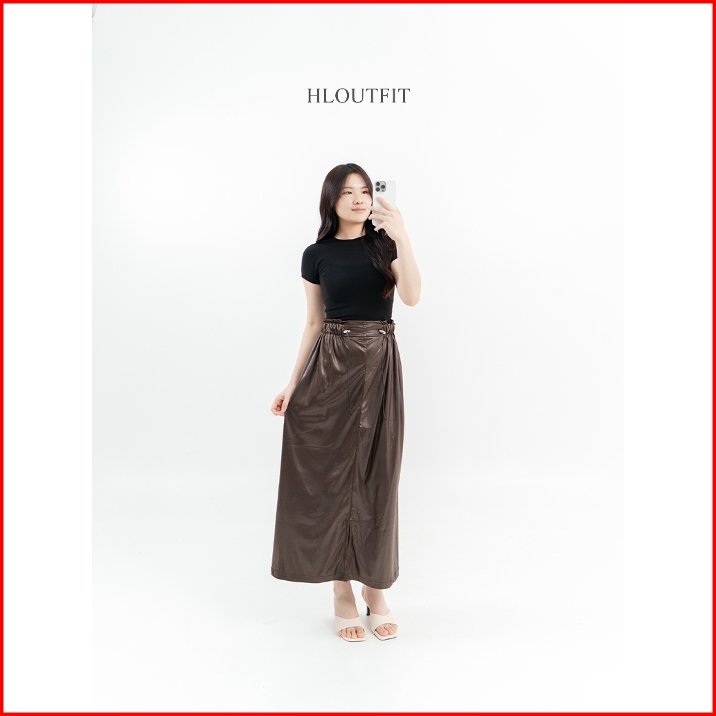 Hl Eve Leather Skirt Maxi- Rok Kulit Wanita Panjang Realpict