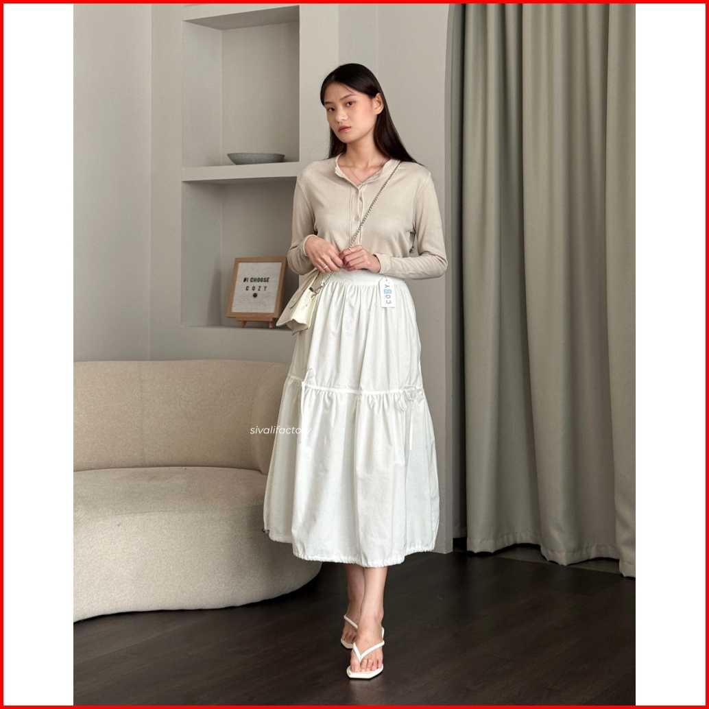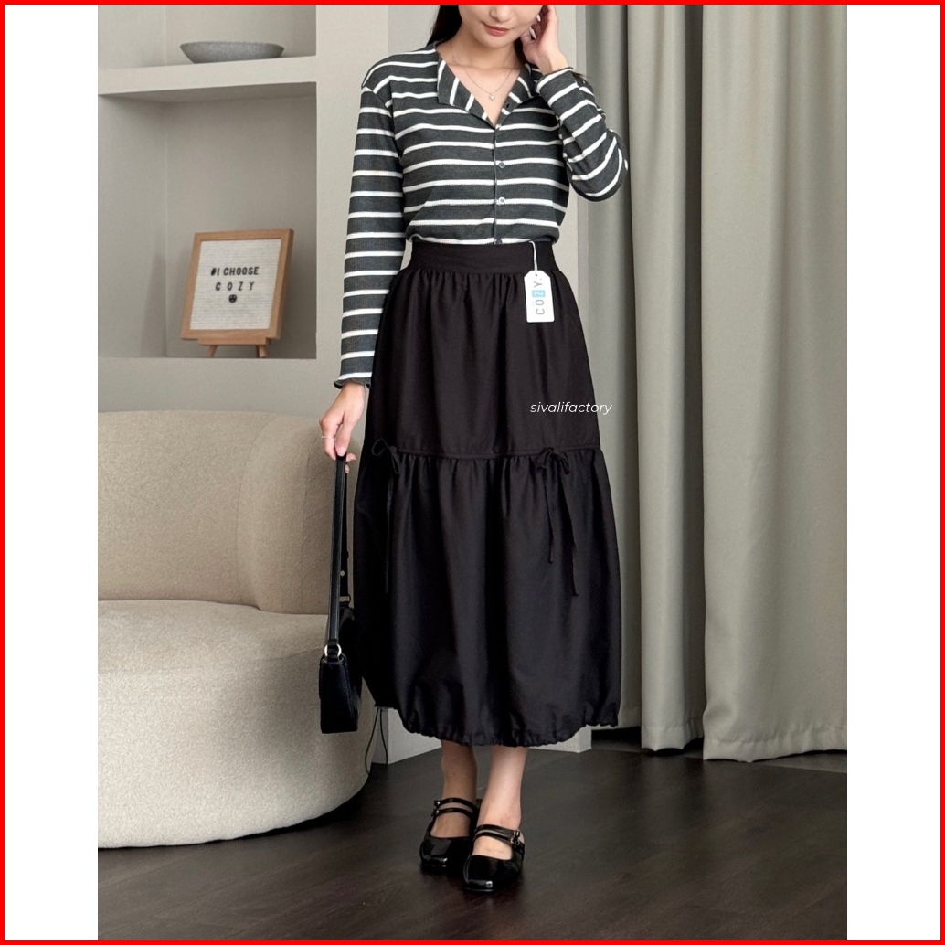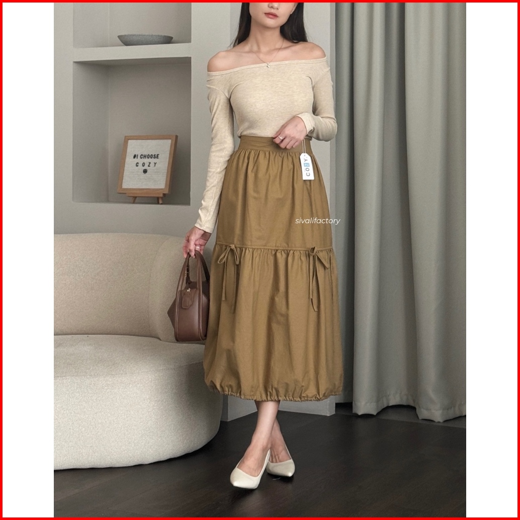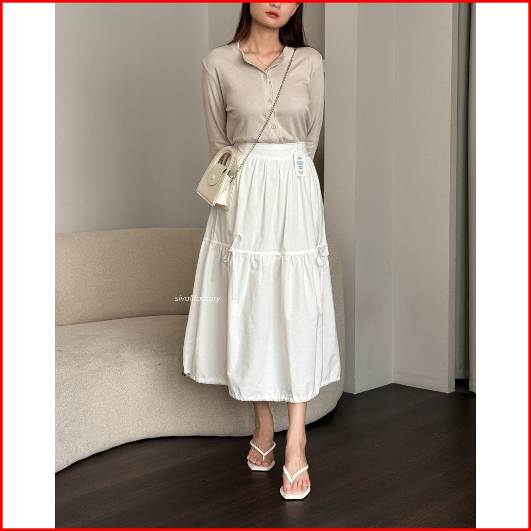Sivali Charlotte Skirt - Rok Ruffle Ribbon Drawstring Midi Maxi - Korean Skirt