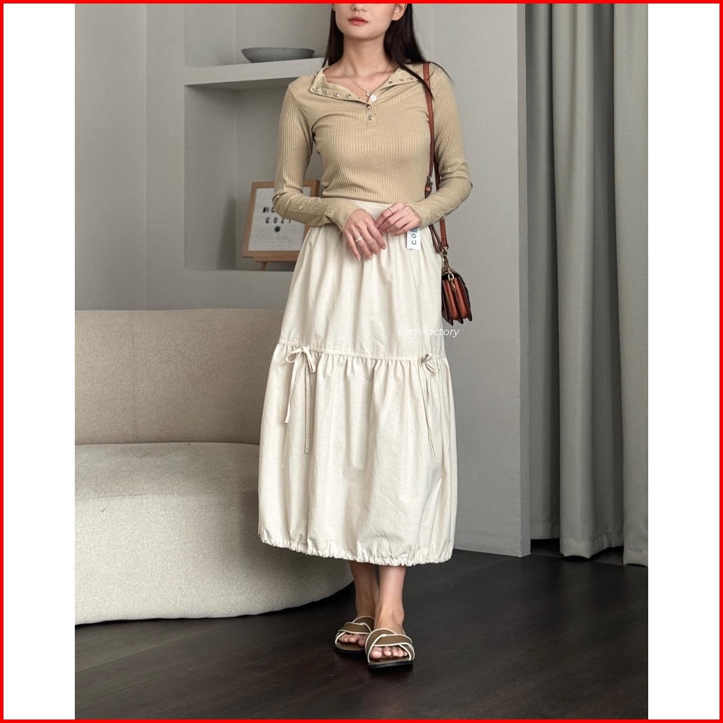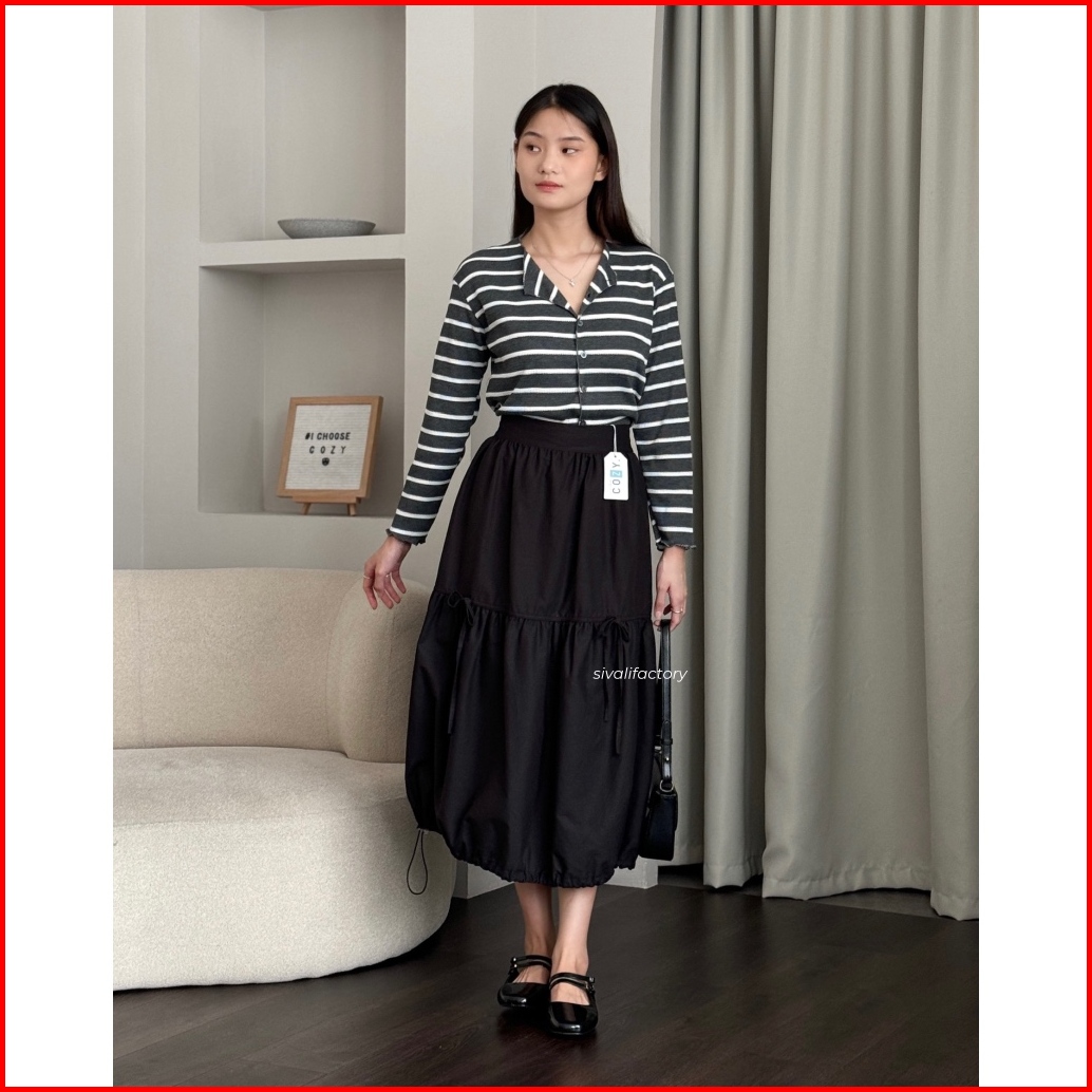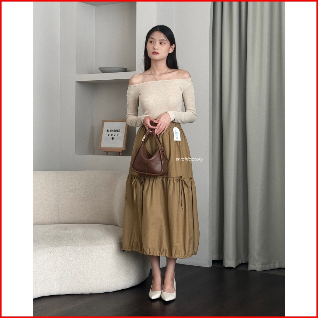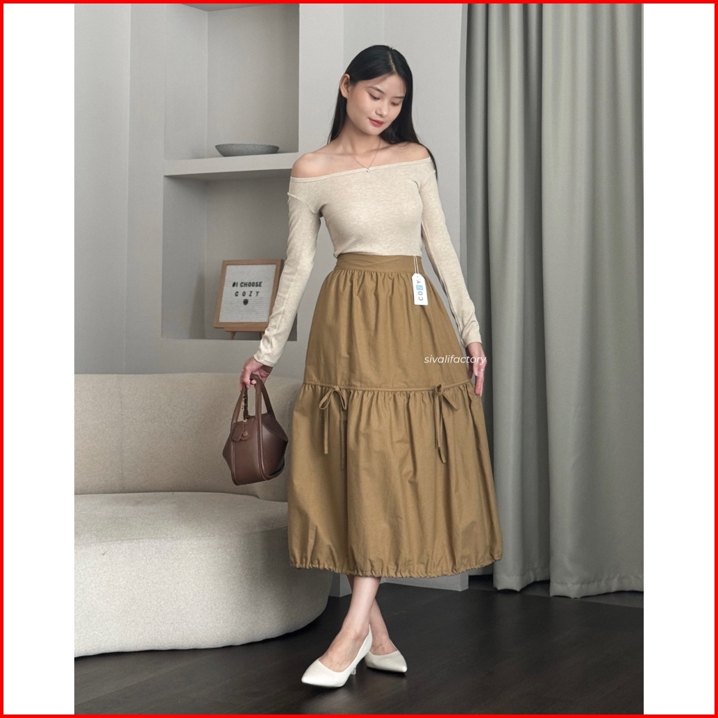 Sivali Charlotte Skirt - Rok Ruffle Ribbon Drawstring Midi Maxi - Korean Skirt