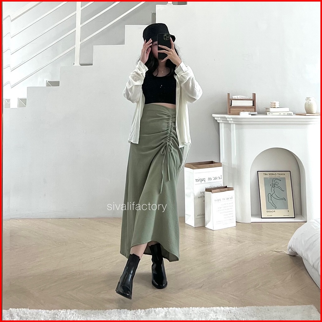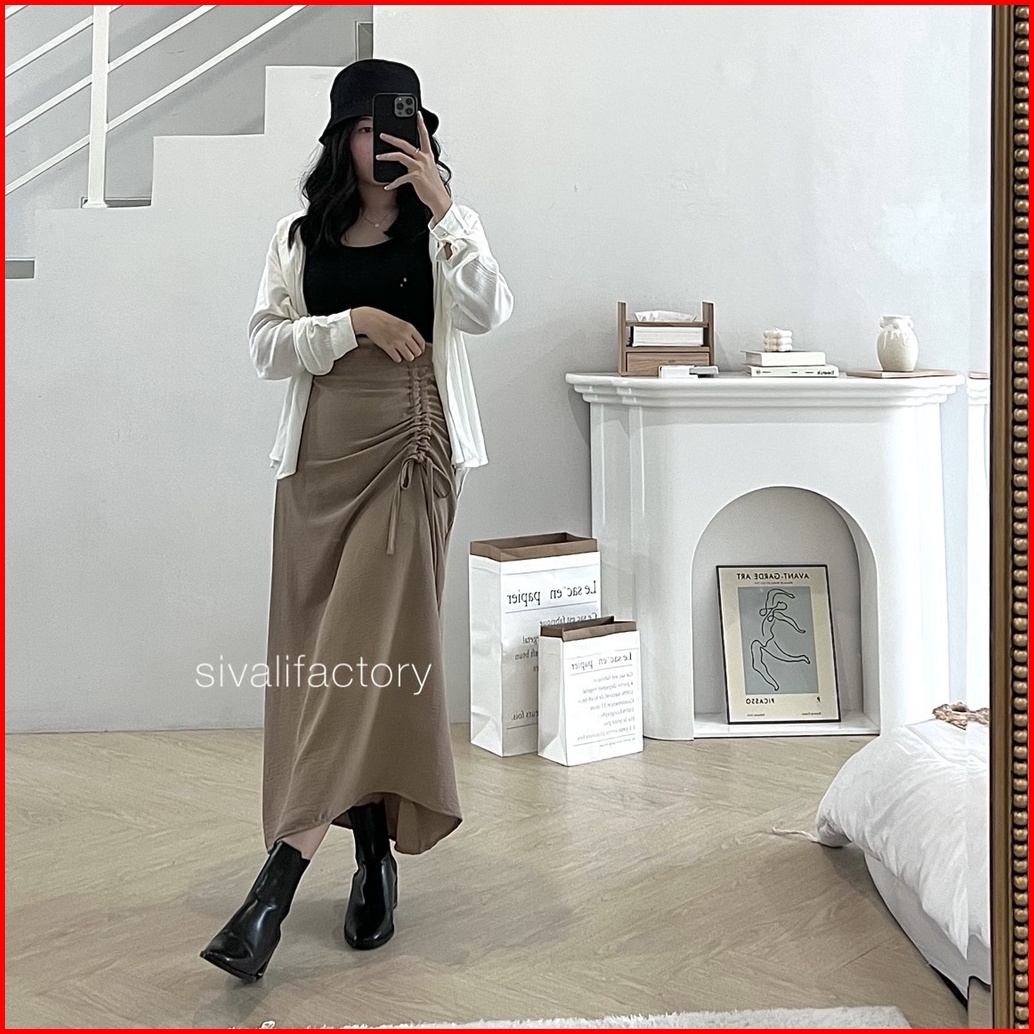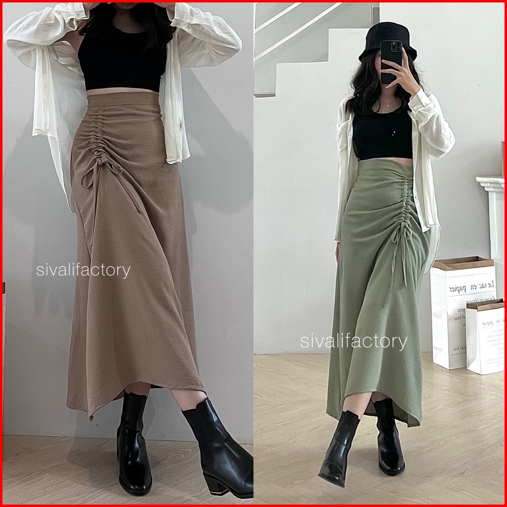 Sivali Tamara Skirt - Rok Serut Casual Flowy - Midi Maxi Ruched Skirt - Rok Wanita Korean Look 8868