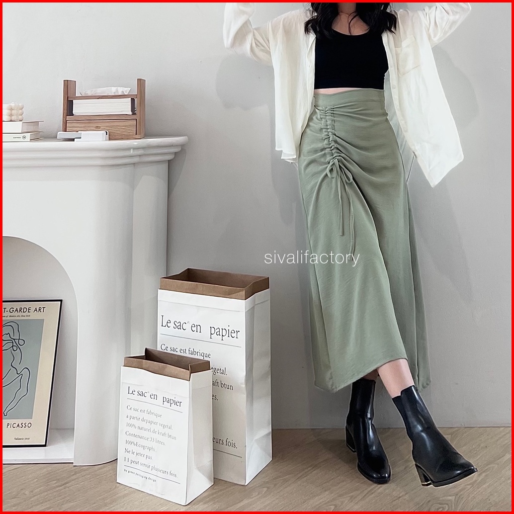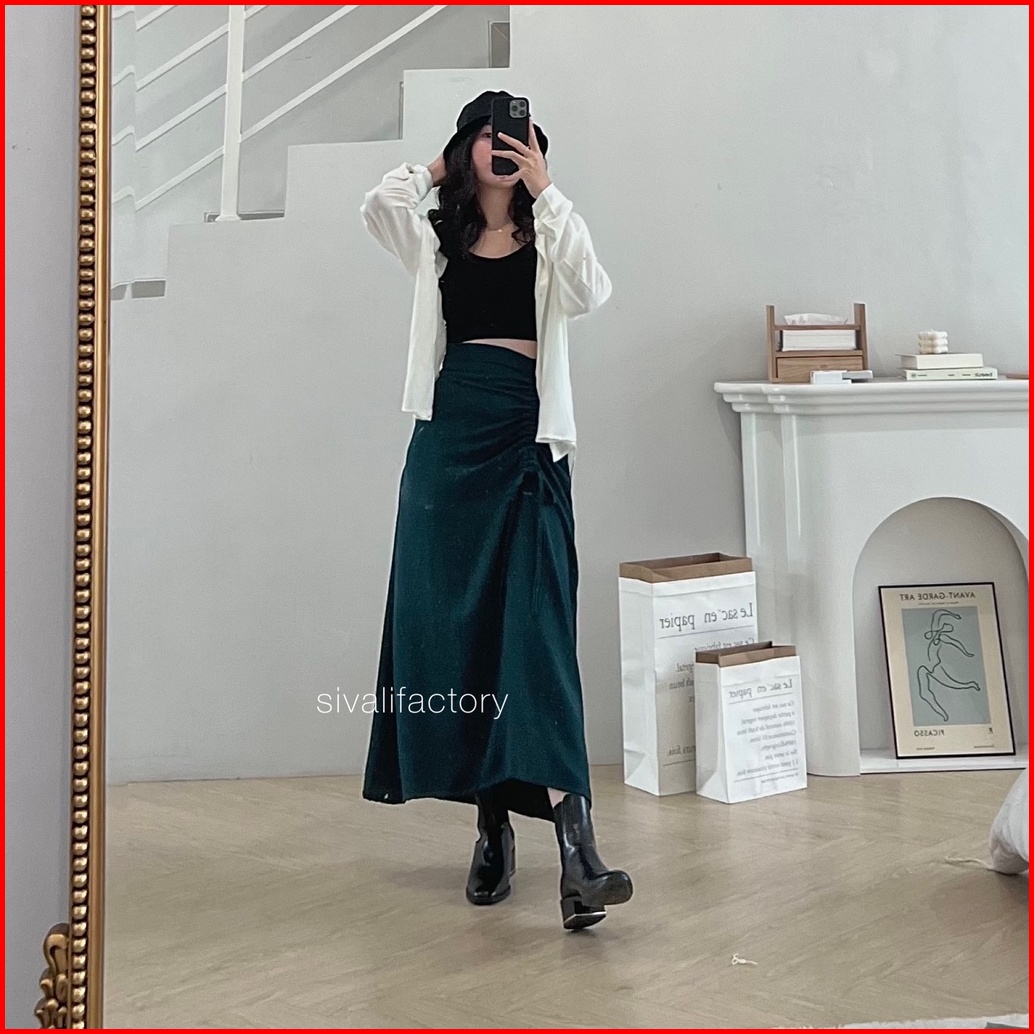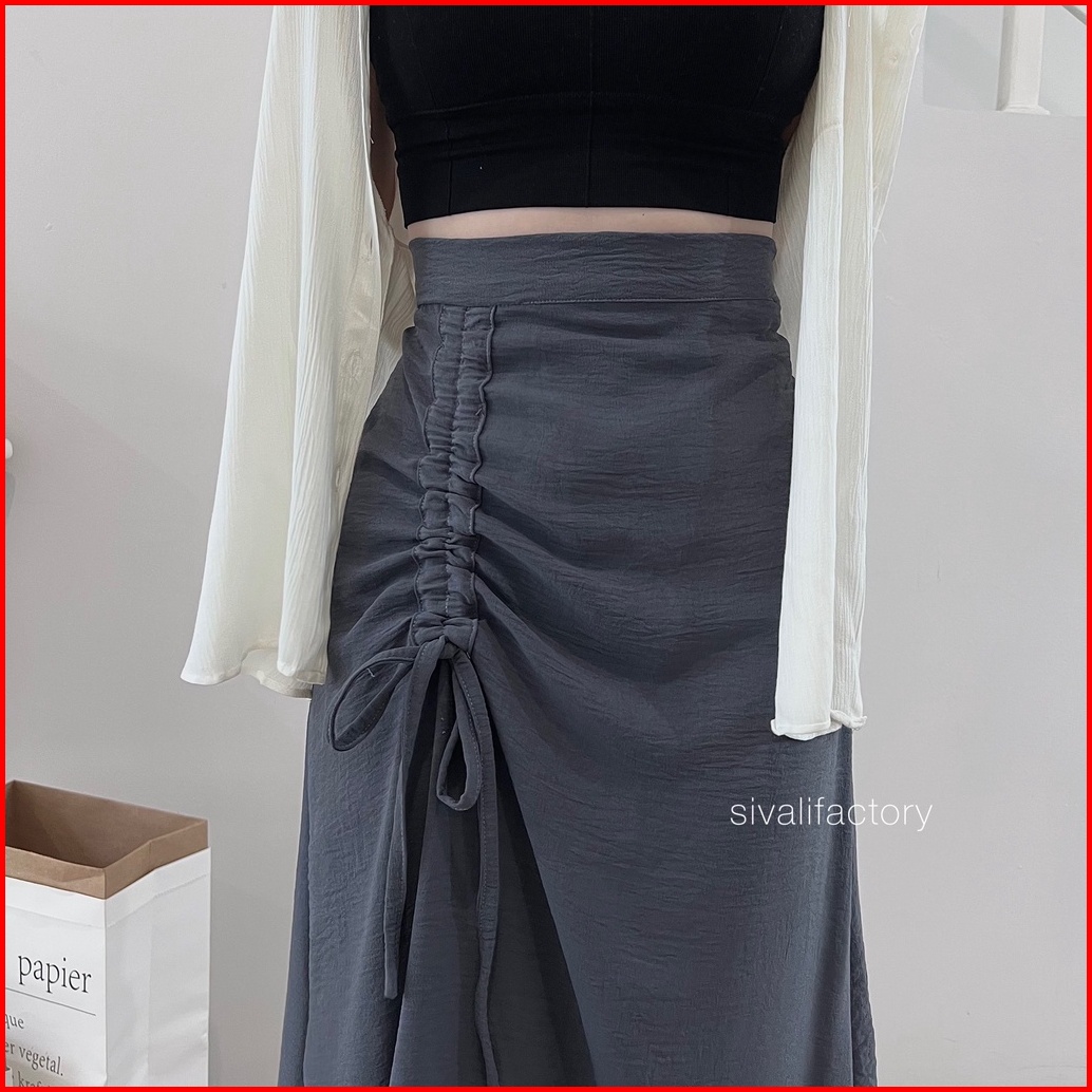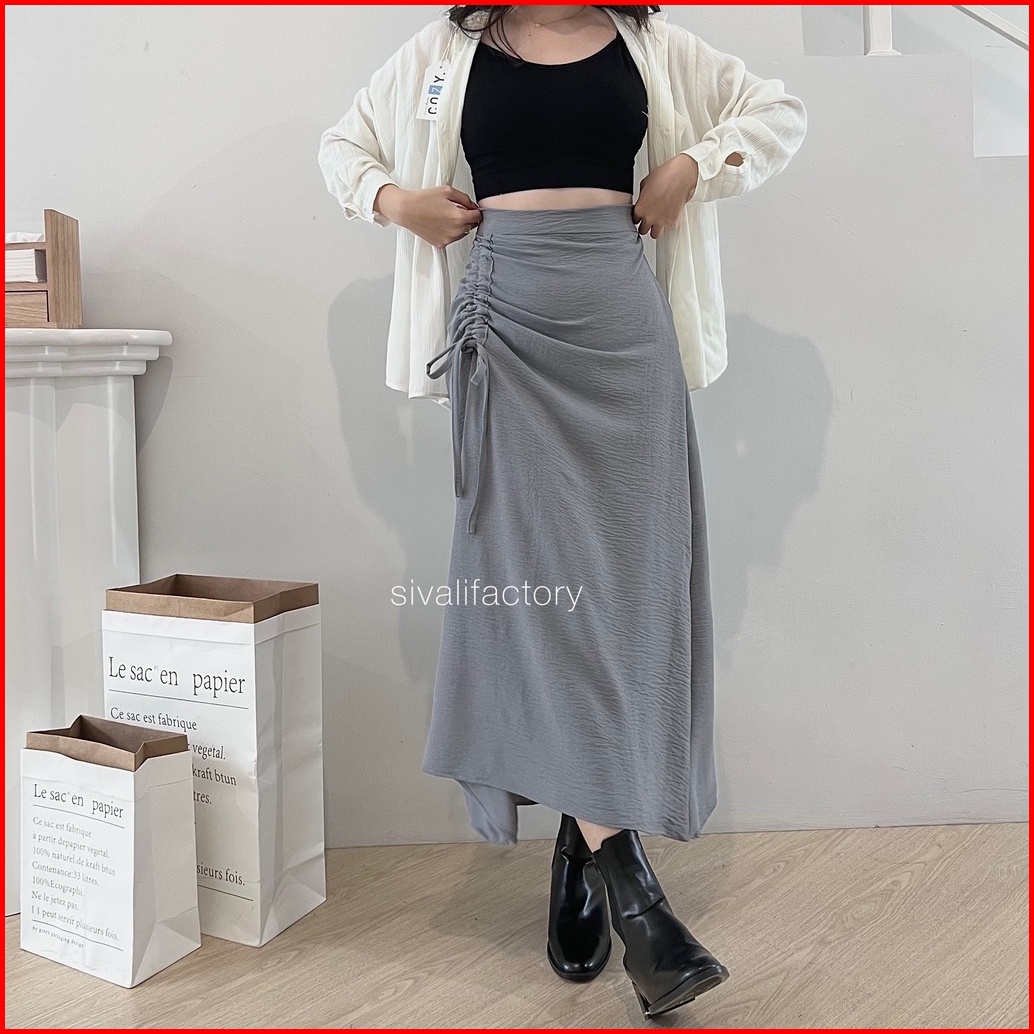 Sivali Tamara Skirt - Rok Serut Casual Flowy - Midi Maxi Ruched Skirt - Rok Wanita Korean Look 8868
