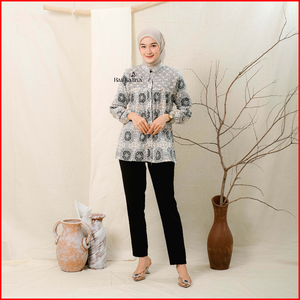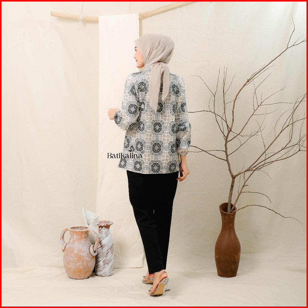 Baju Batik Wanita Modern Atasan Blouse Batik Kerja Kantor Wanita