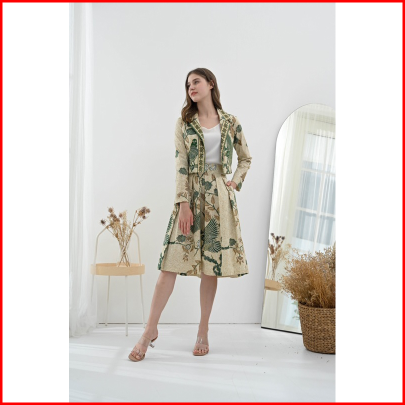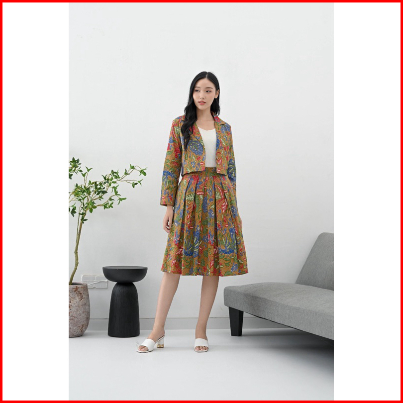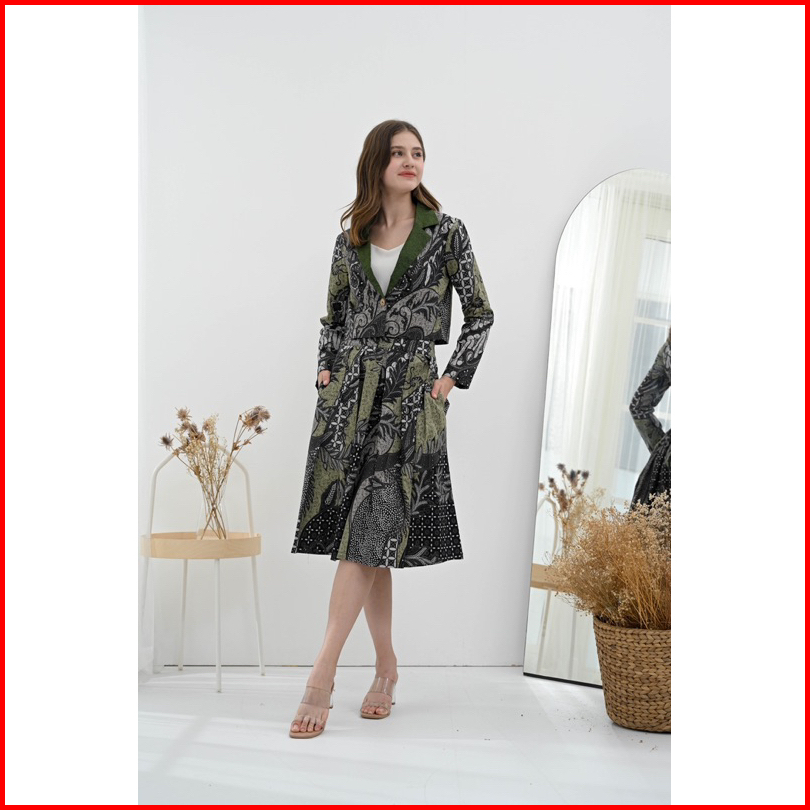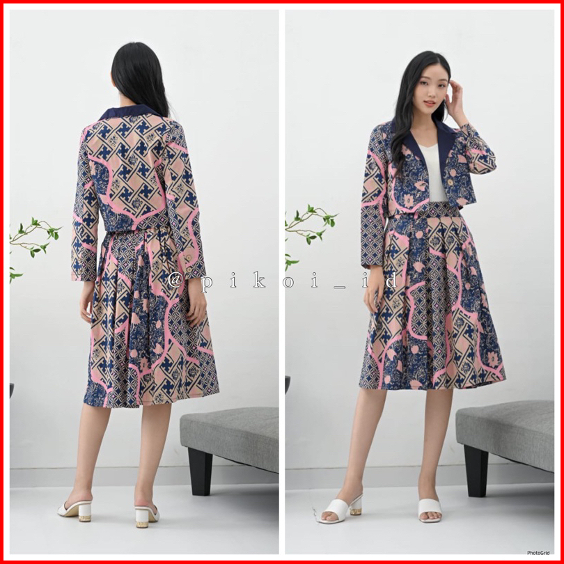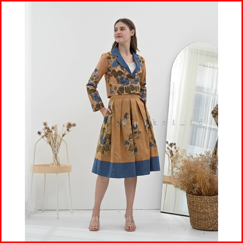 Pikoi Id Setelan Batik Wanita Modern Lengan Panjang Semi Blazer Set Batik Rok Kantor 316 Panjang