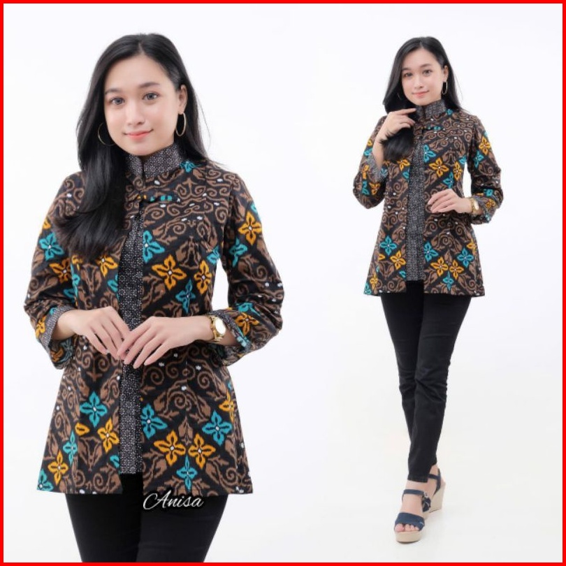 Batik Wanita Asj Sa Hrb026 Kenongo Kemeja Tosca Pendek Kerja Kantor