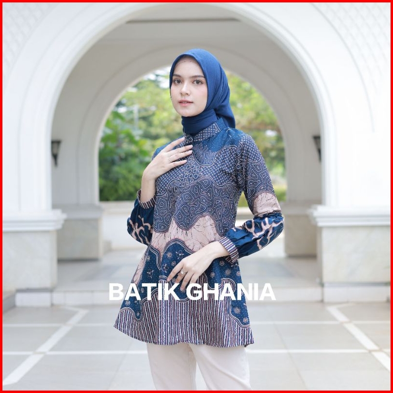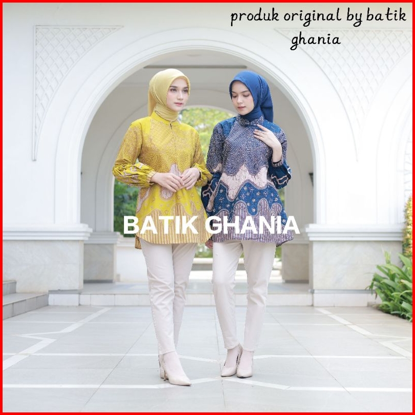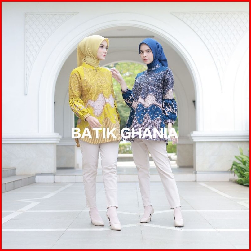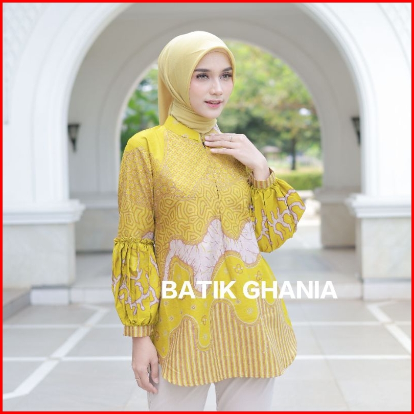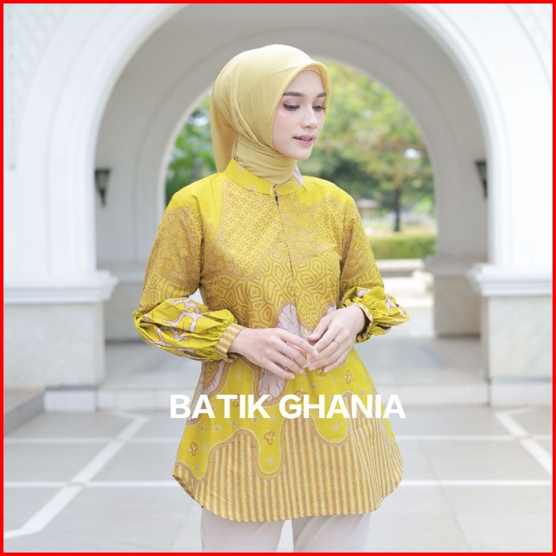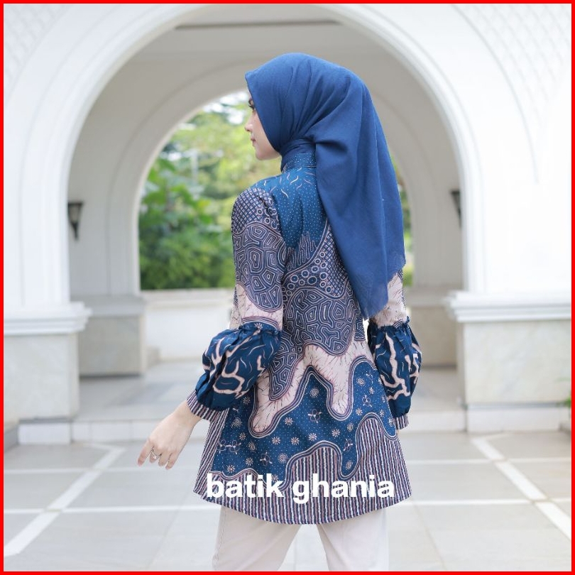 Batik Wanita Modern Baju Batik Wanita Lengan Balon Resleting Depan By Batik Ghania