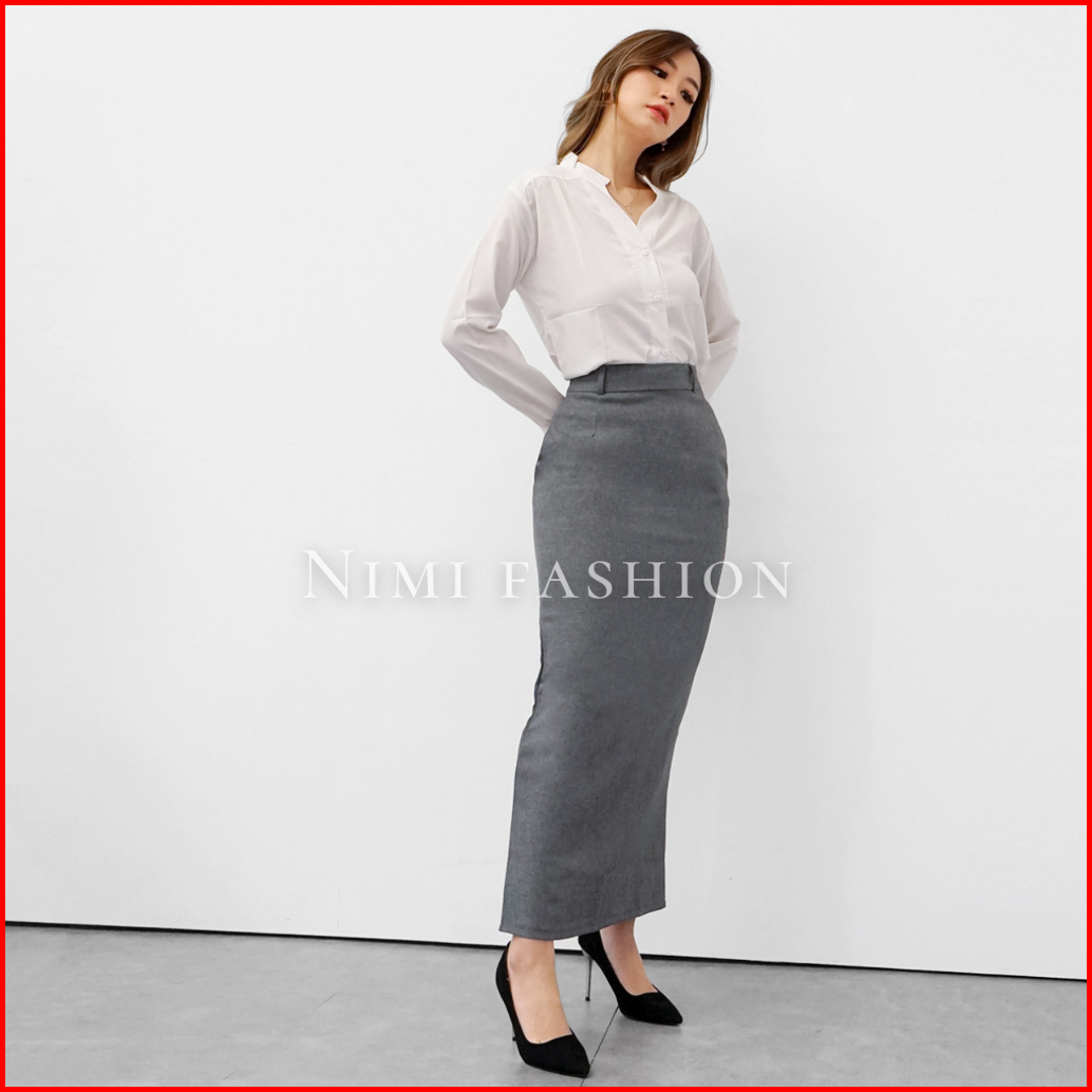 Nimi - Rok Span Belah Belakang Rok Kerja Wanita Panjang Rok Formal Kantor Wanita