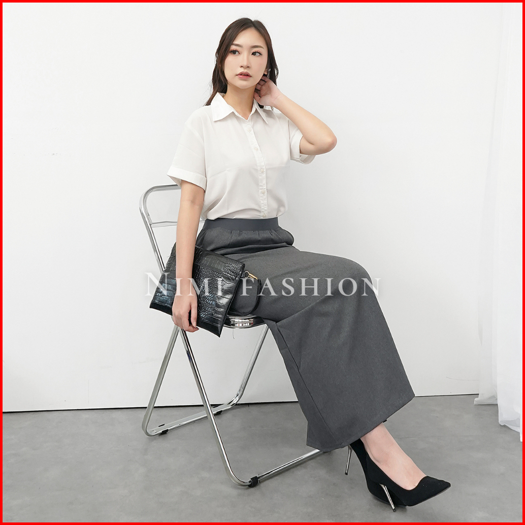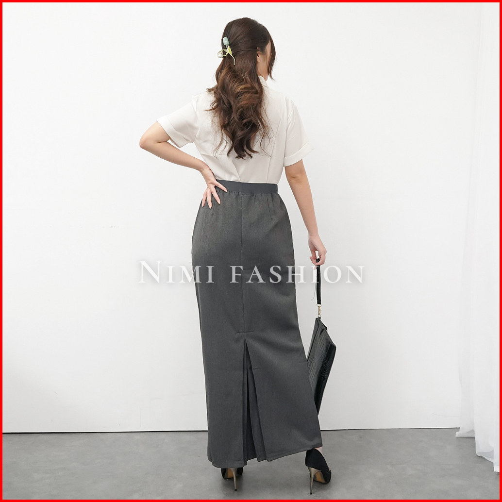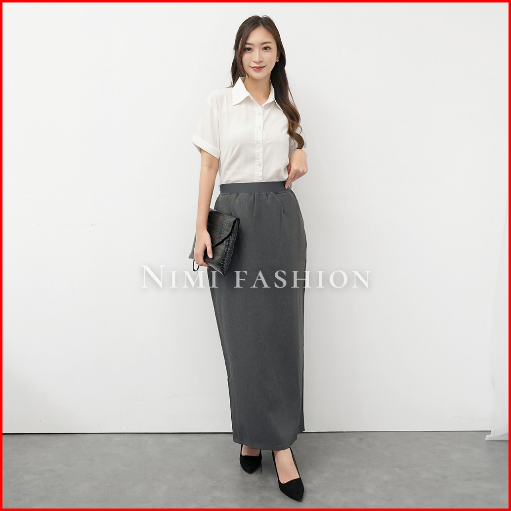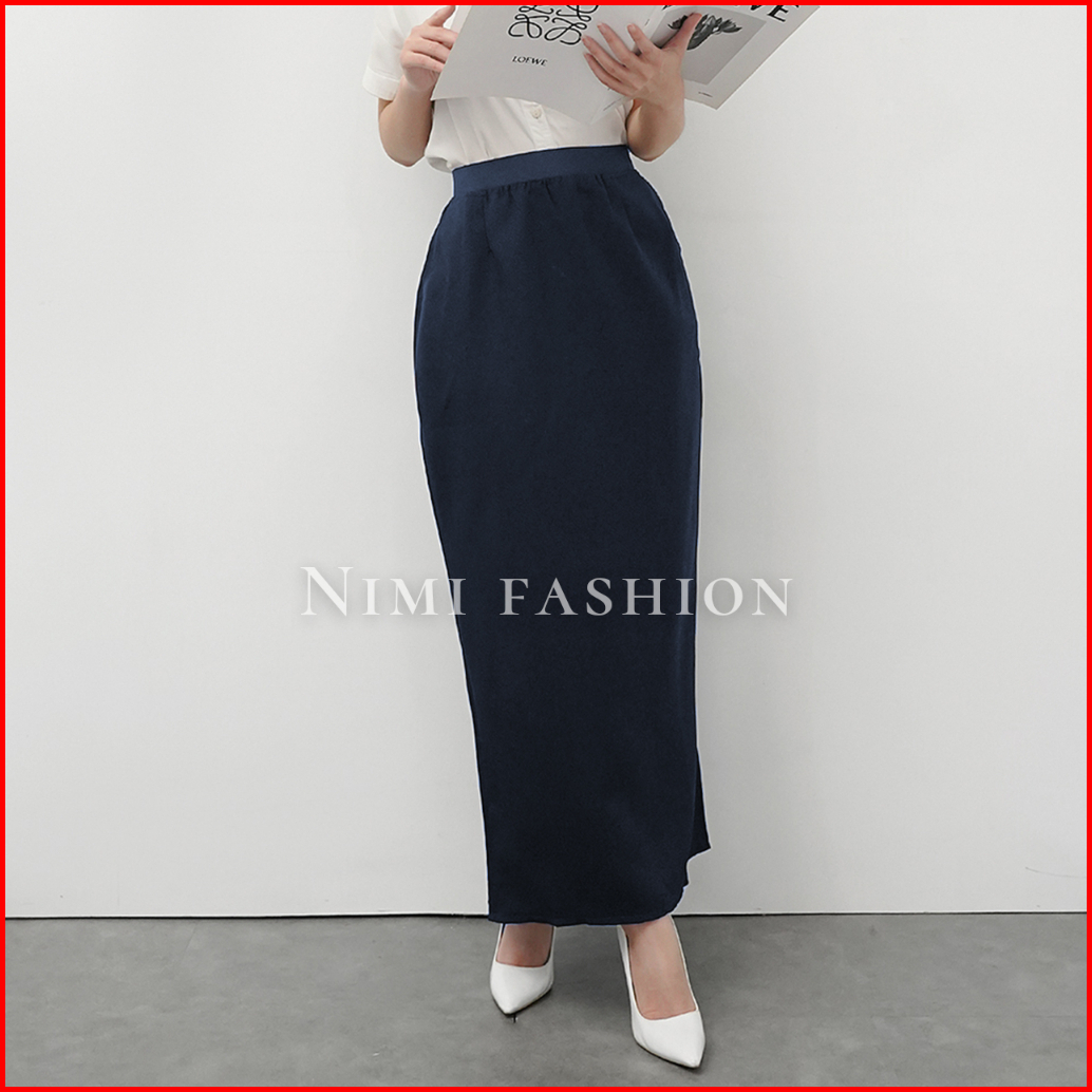 Nimi - Rok Kerja Panjang Span Rempel Belakang Pinggang Karet Bahan Kantor Formal Wanita