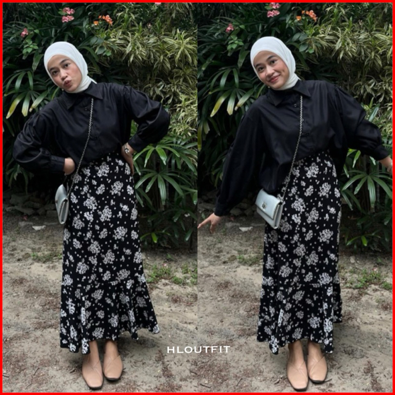Hl Flower Skirt Crinkle- Rok Rample Bunga Bunga Realpict