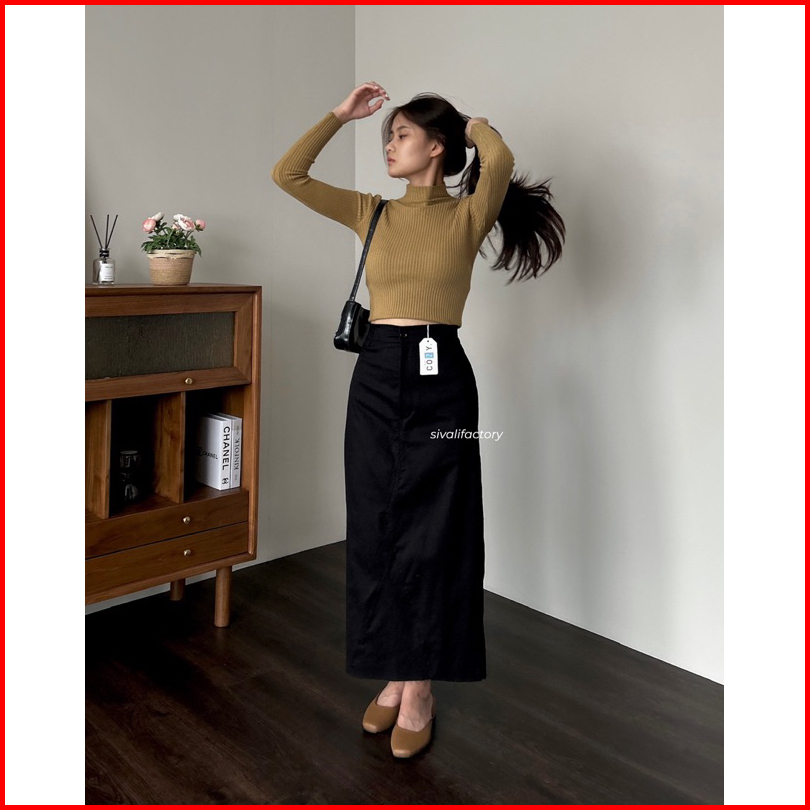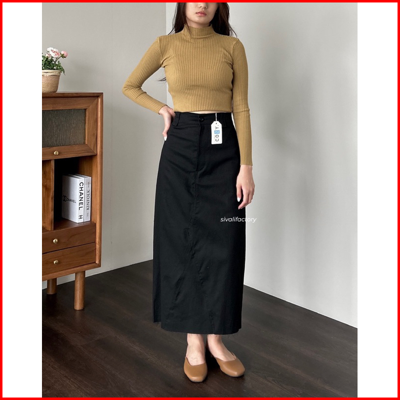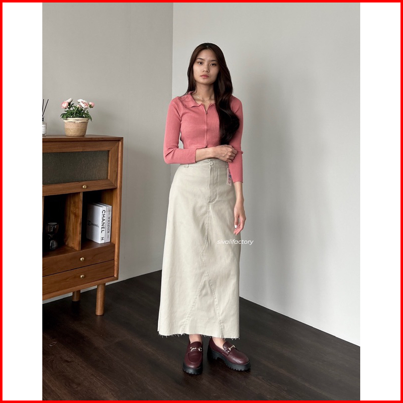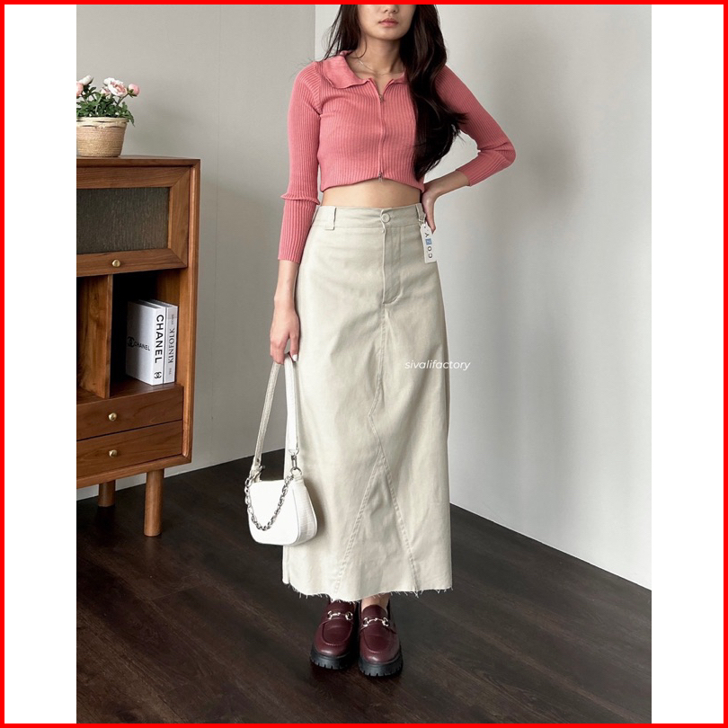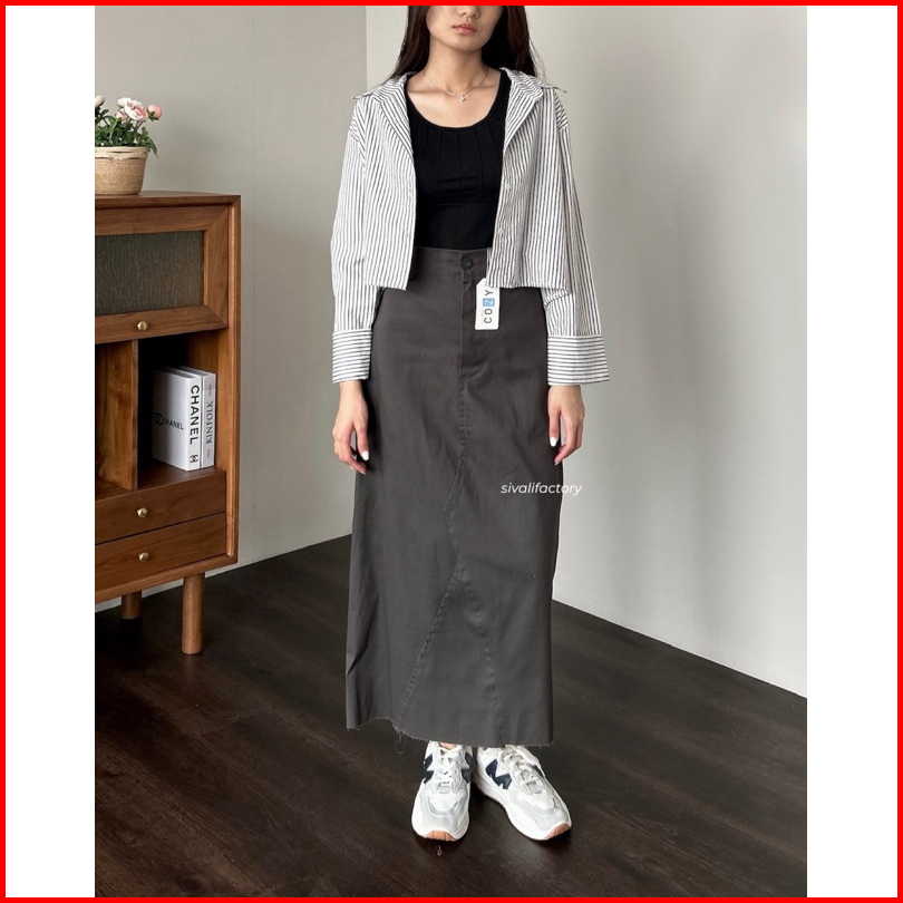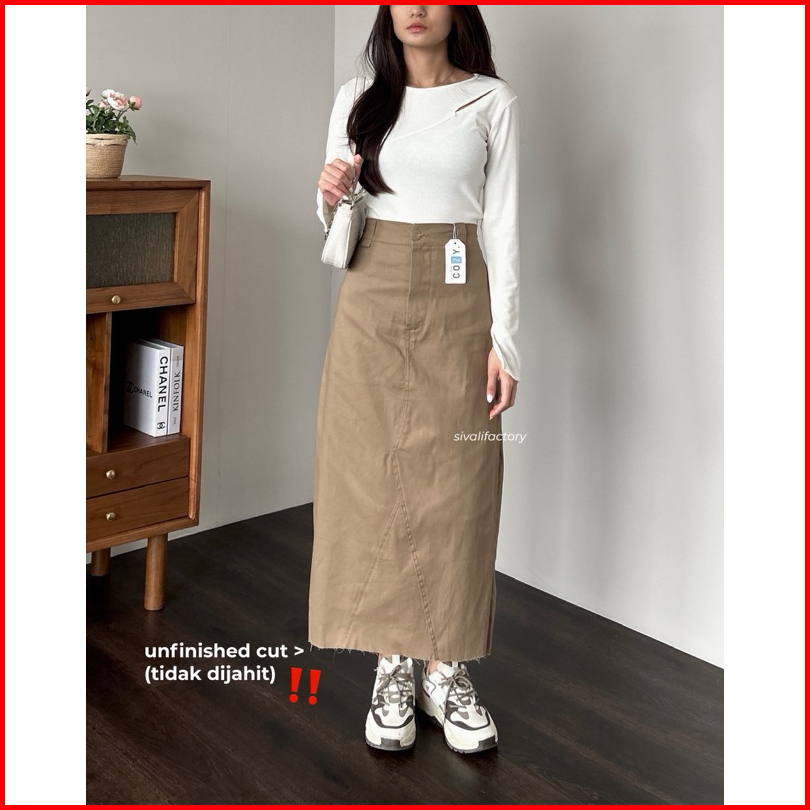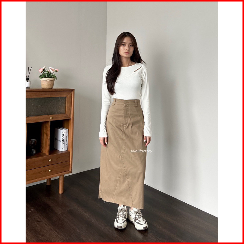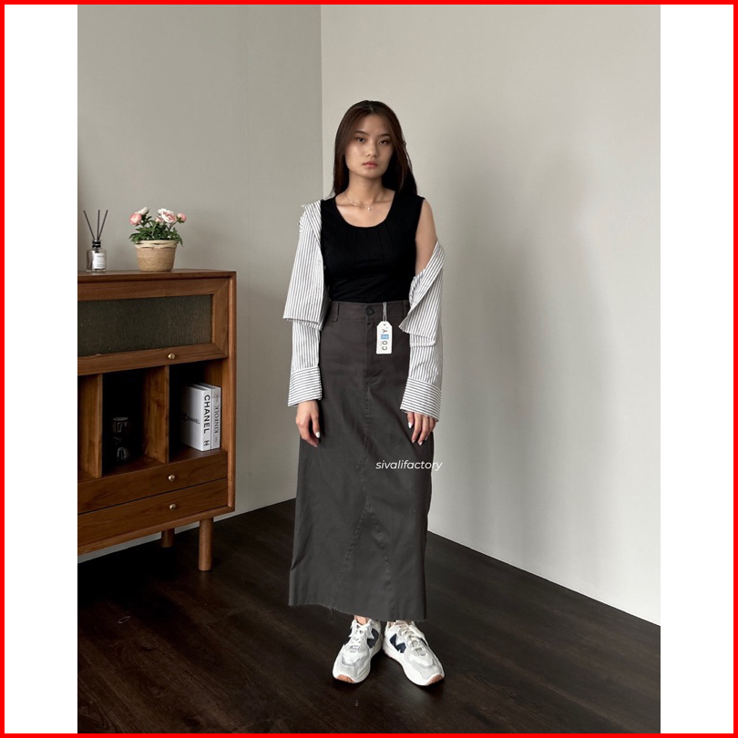 Sivali Rome Skirt - Rok Cotton Chinos Wanita Pocket Long Skirt Maxi Panjang