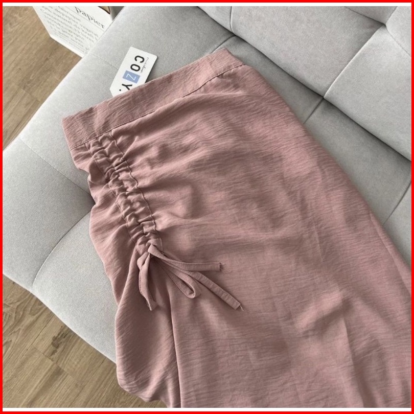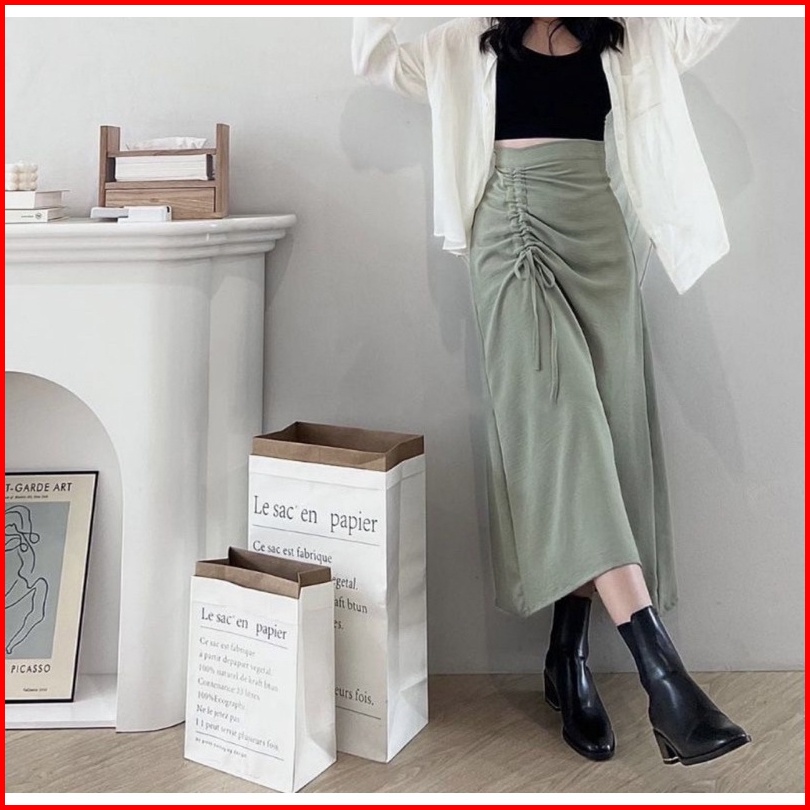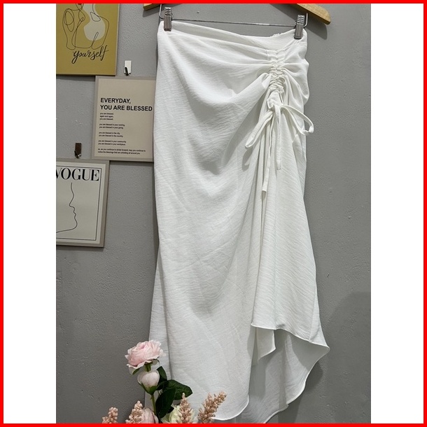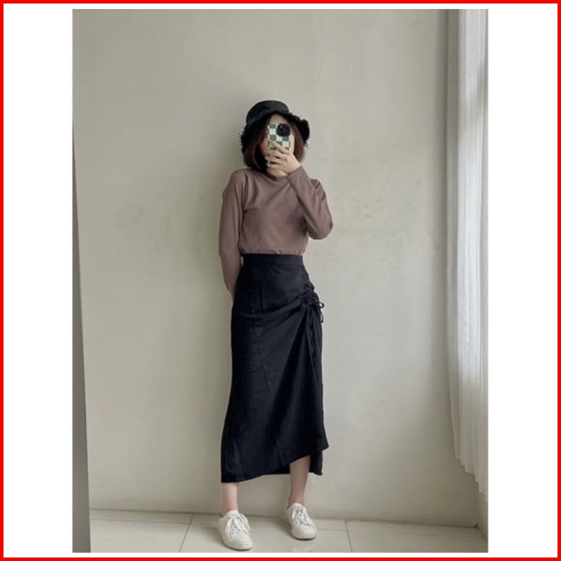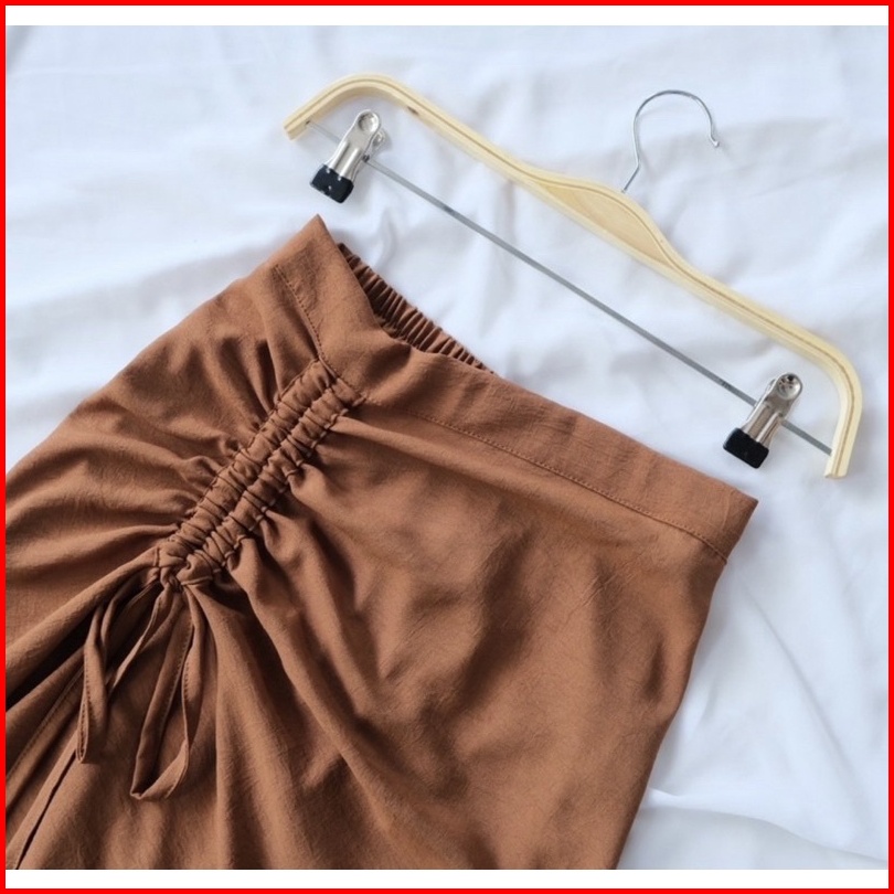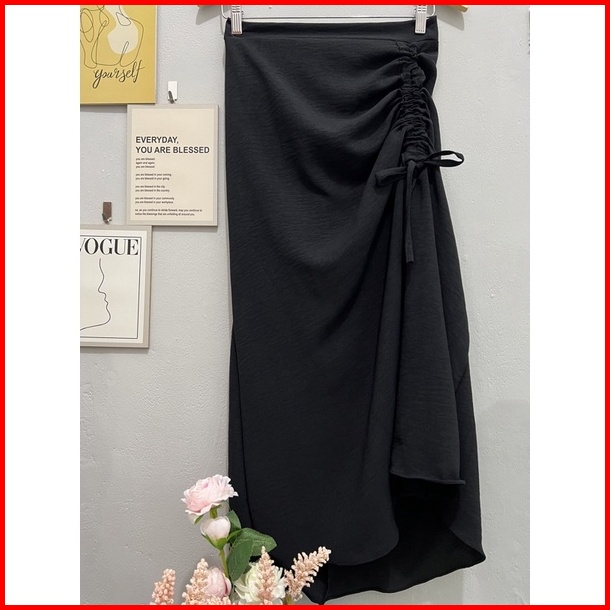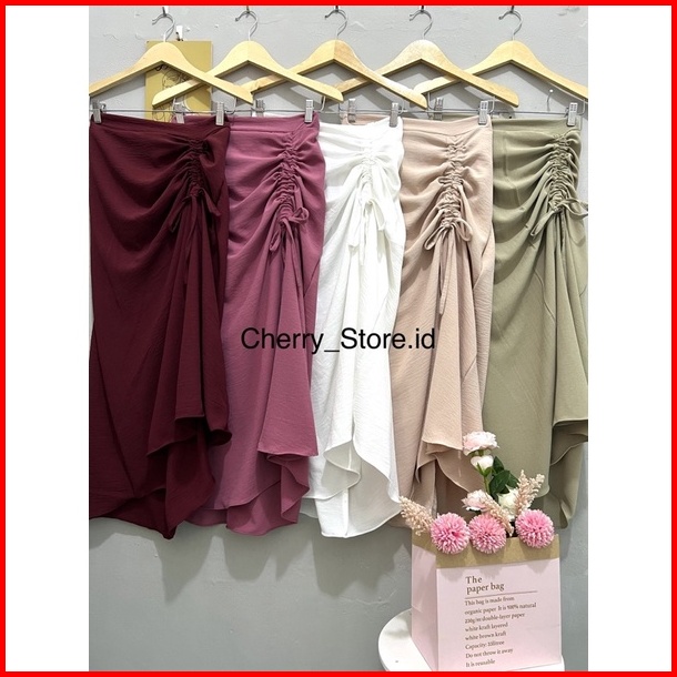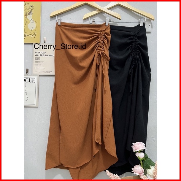 Cherry Skirt Rok Serut Casual Flowy Midi Maxi Ruched Skirt Rok