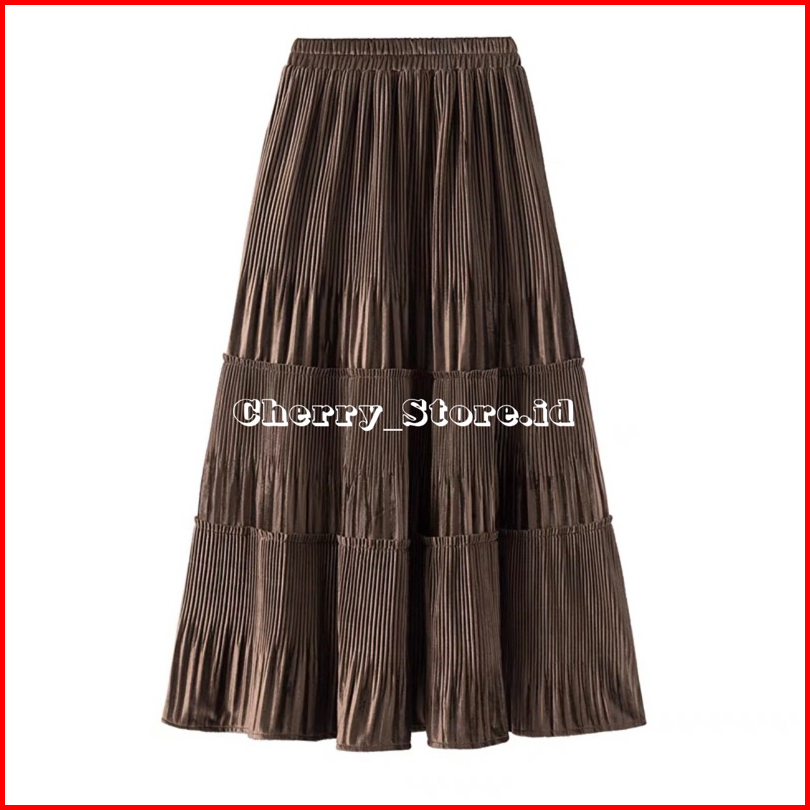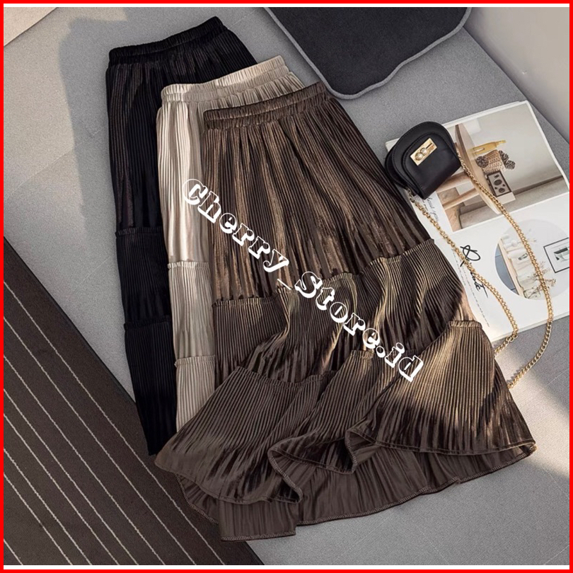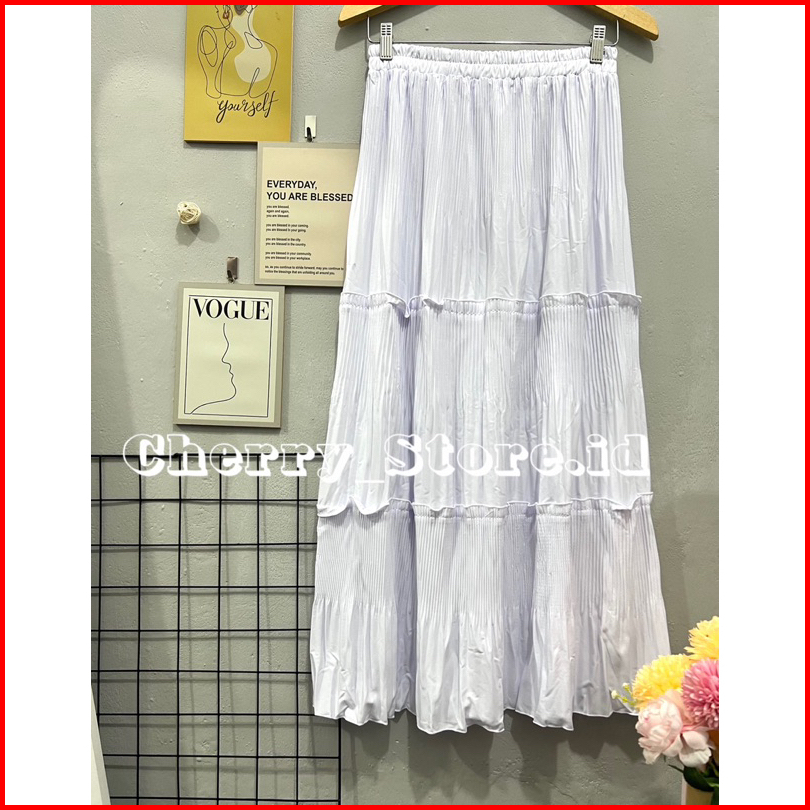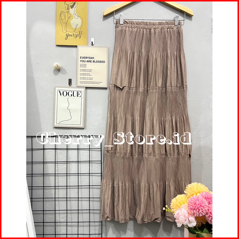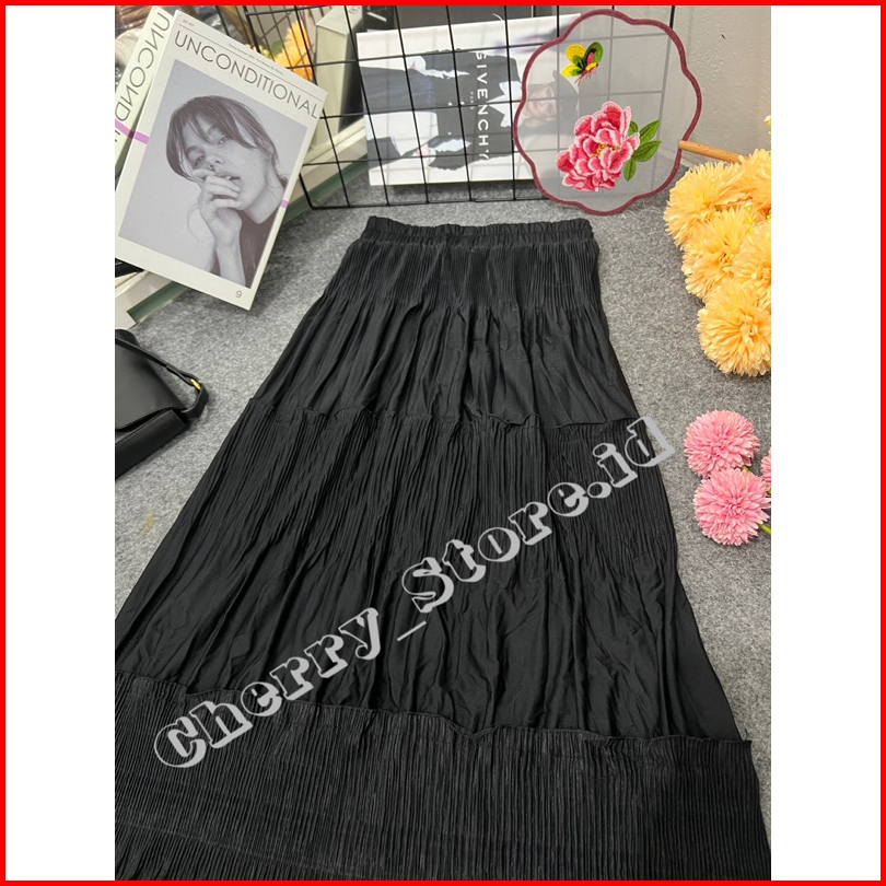 Cherry 129 Rok Cabang Lidi 3 Susun Terbaru Pleated Skirt Korean Style Rok Wanita Muslim