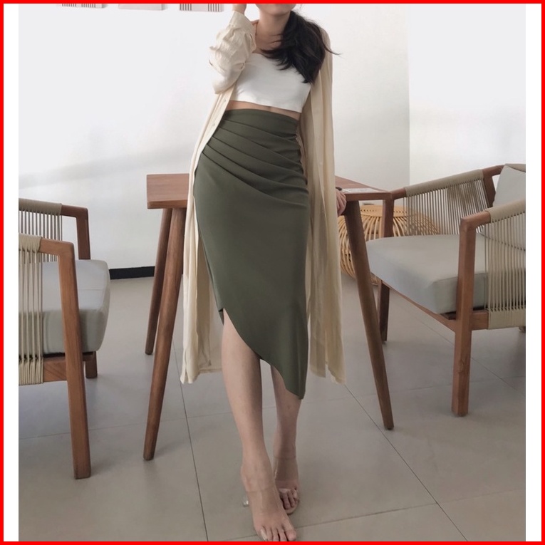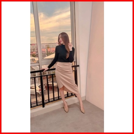 Abby Fey Midi Skirt Rok Asimetris Korean Casual