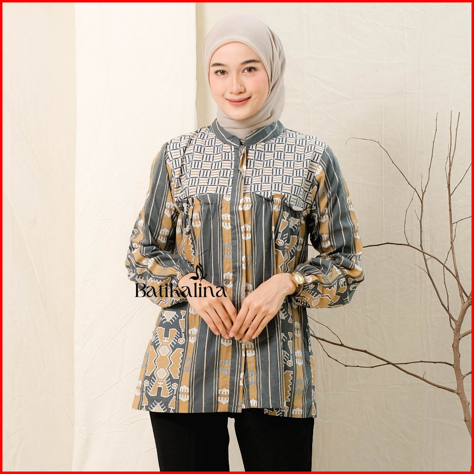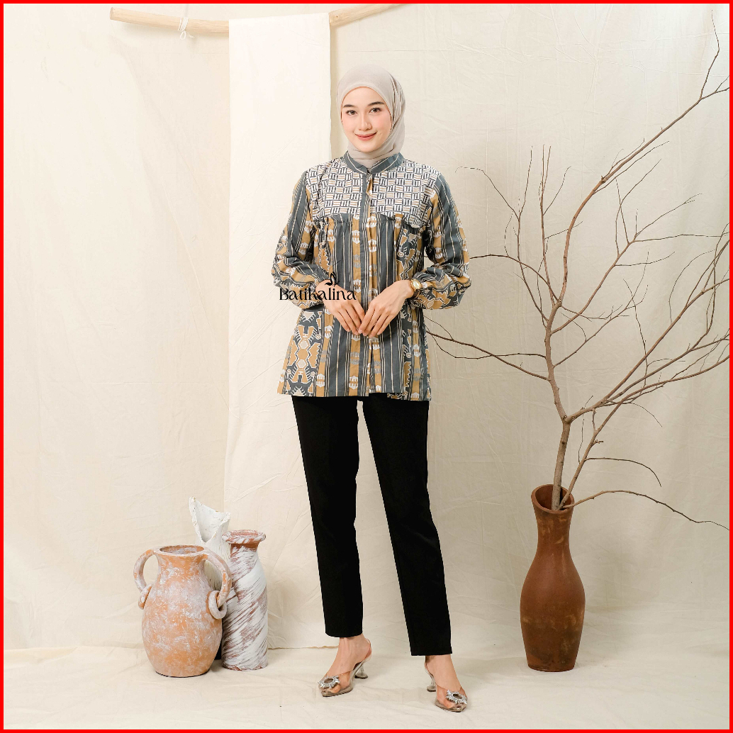 Baju Batik Wanita Modern Atasan Blouse Batik Kerja Kantor Wanita