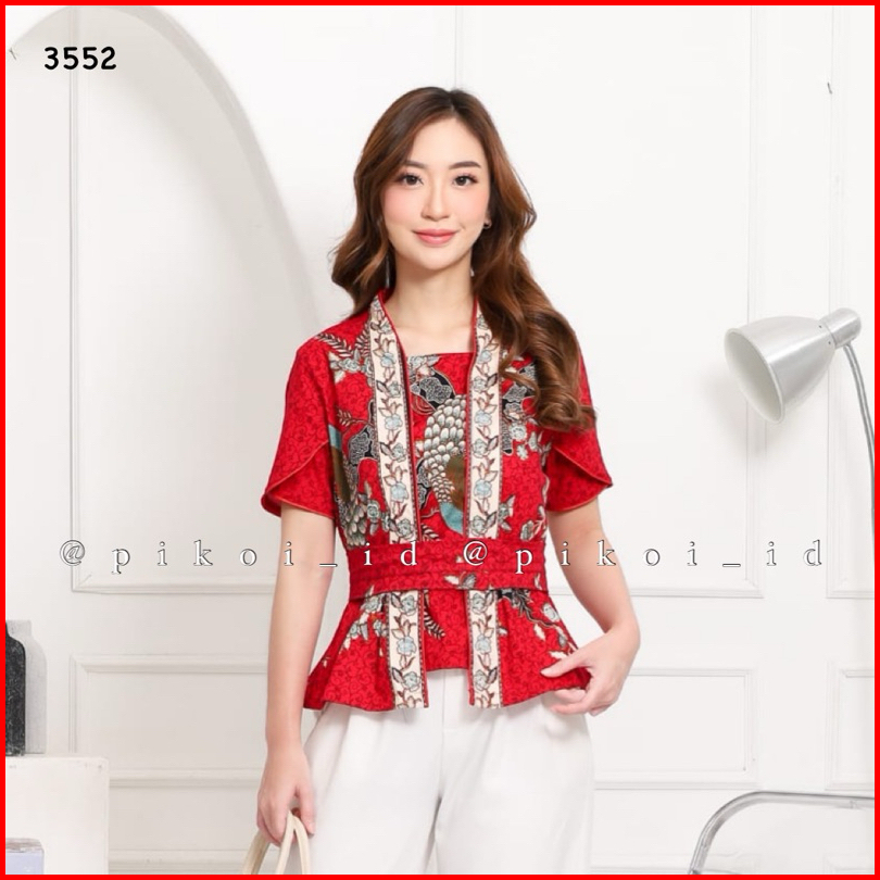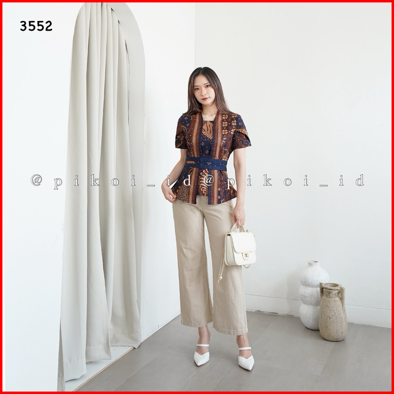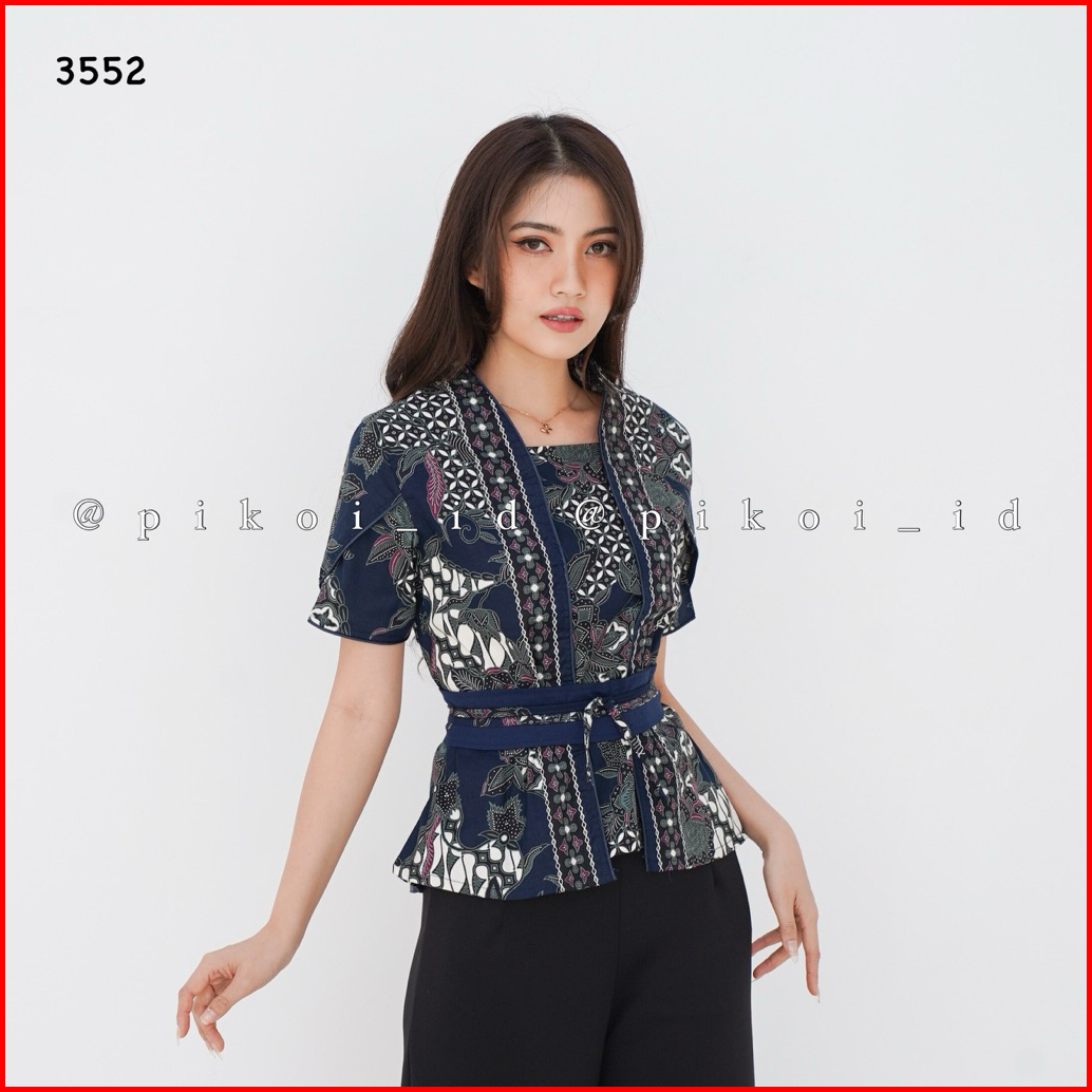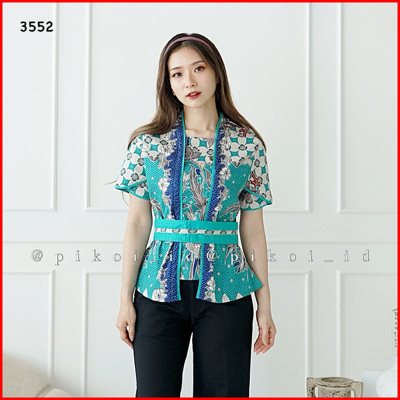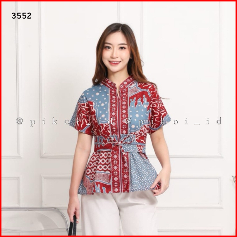 Baju Batik Wanita Modern Atasan Batik Wanita Murah Blouse Batik Ikat Kantor Free Belt Obi 3552