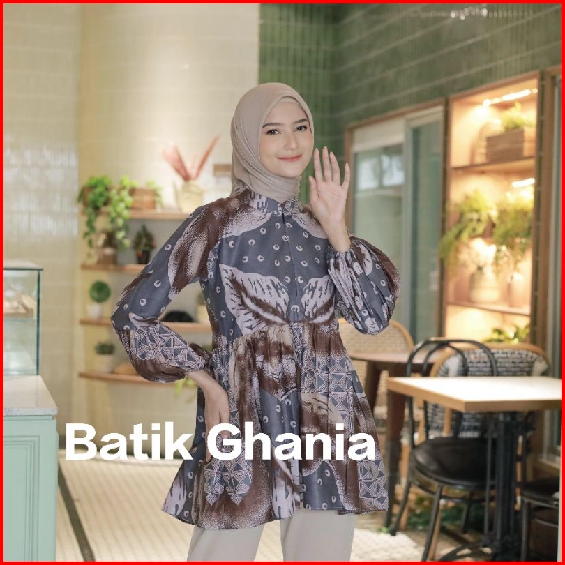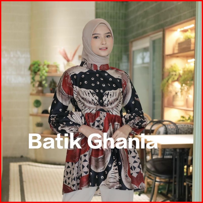 Blouse Batik Wanita Modern Atasan Batik Kantor Batik Lengan Panjang Busui