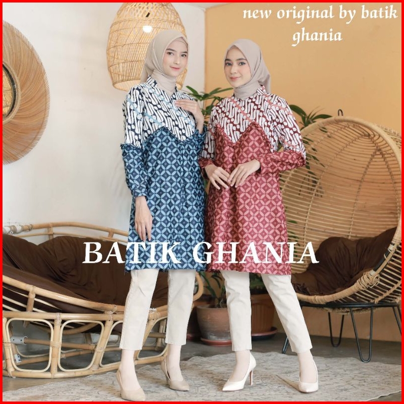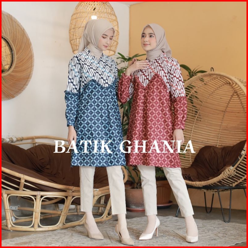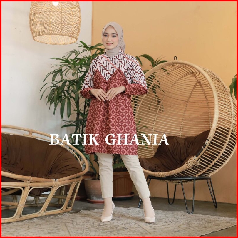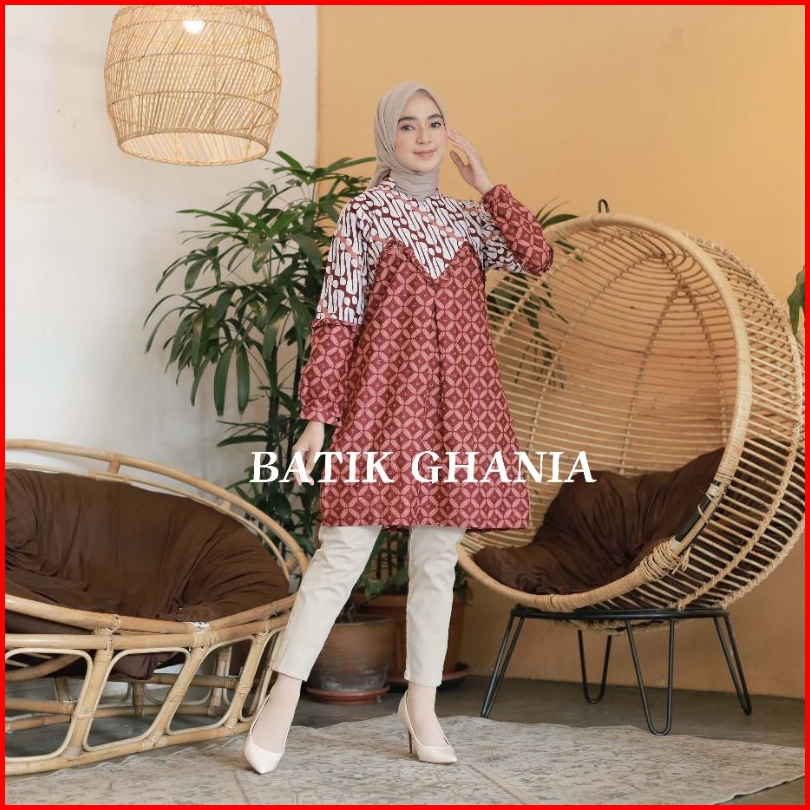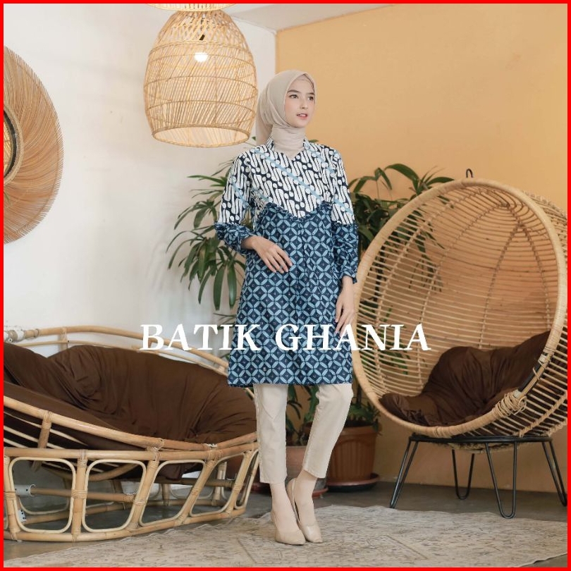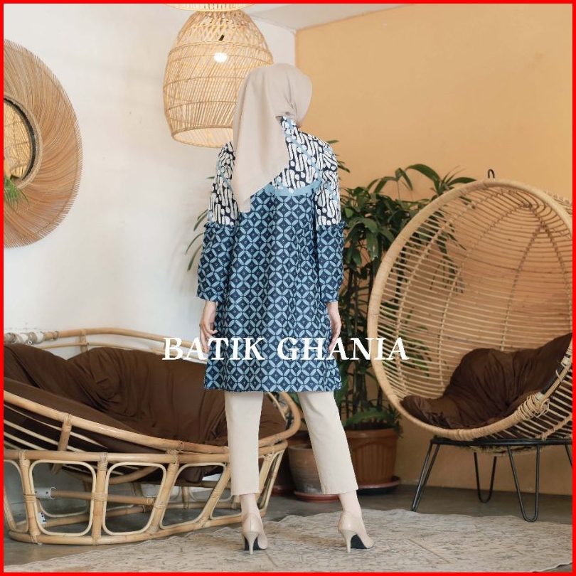 Tunik Batik Wanita Modern Atasan Tunik Terbaru Lengan Panjang Motif Parangkawong