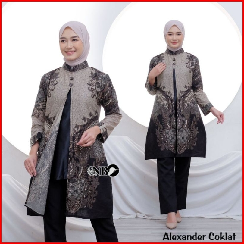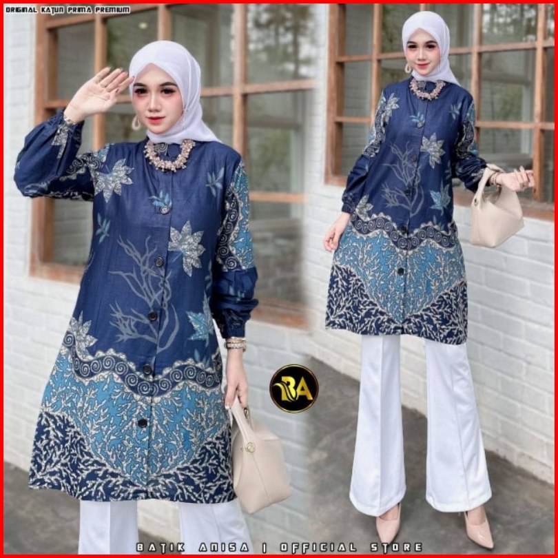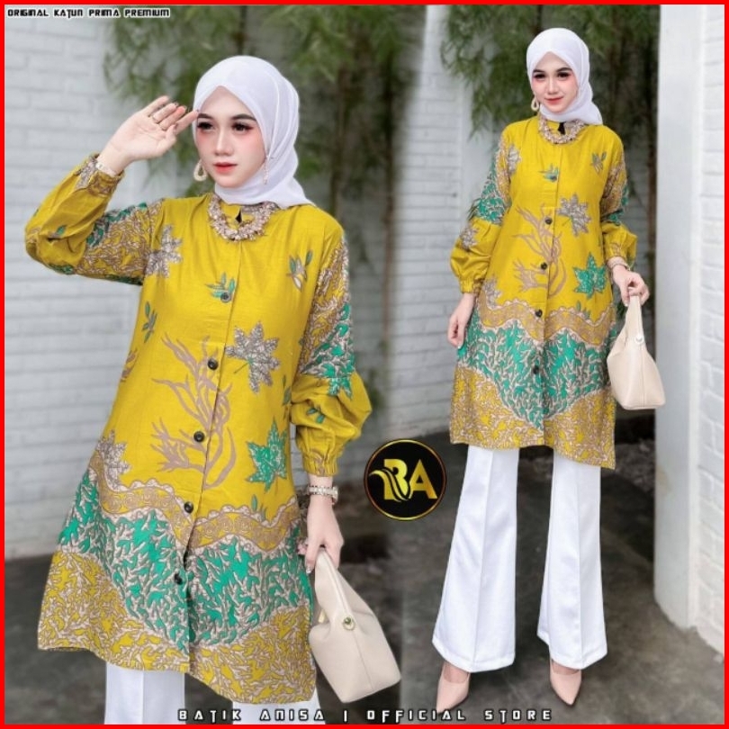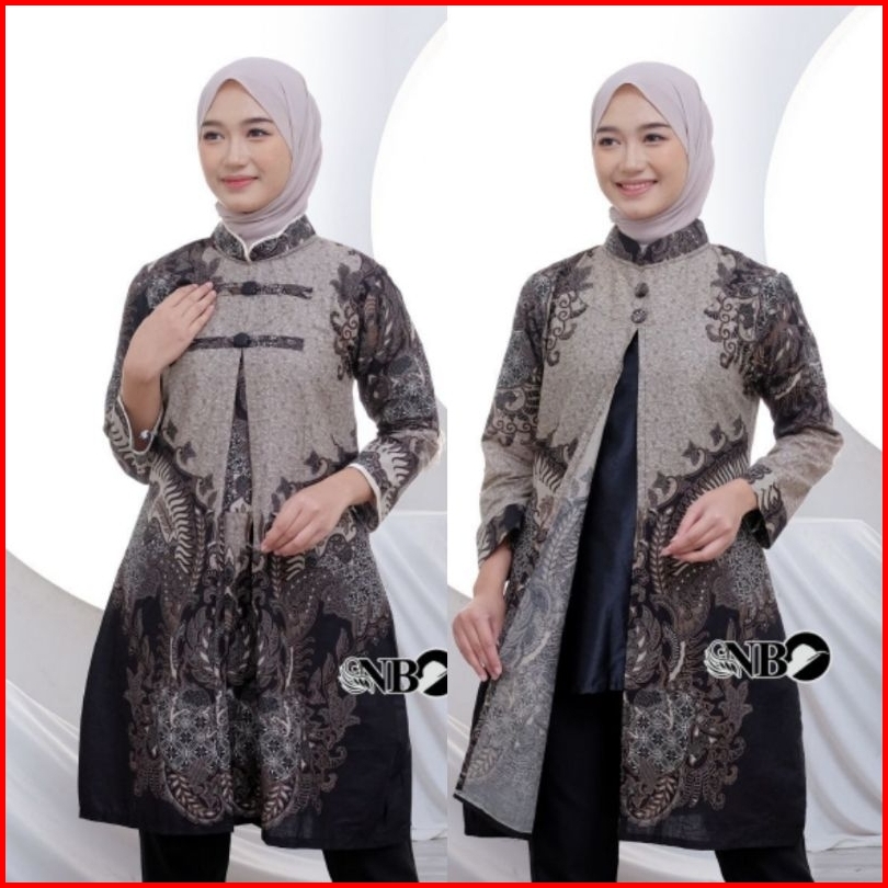 M-l-xl-xxl Batik Tunik Wanita Asj Sa Hrb026 Kenongo Pekalongan Sogan Tulis