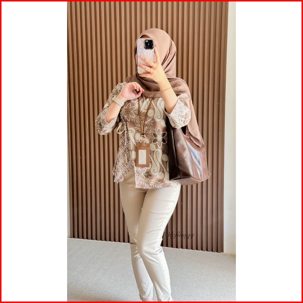 Tey-17 Batik Wanita Asj Sa Hrb026 Kenongo Kemeja Tosca Pendek