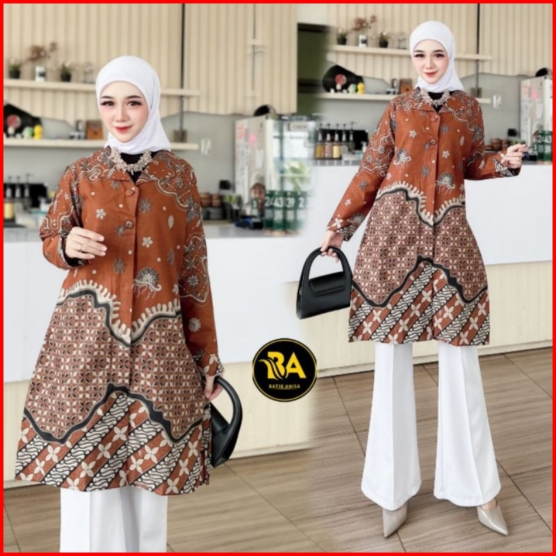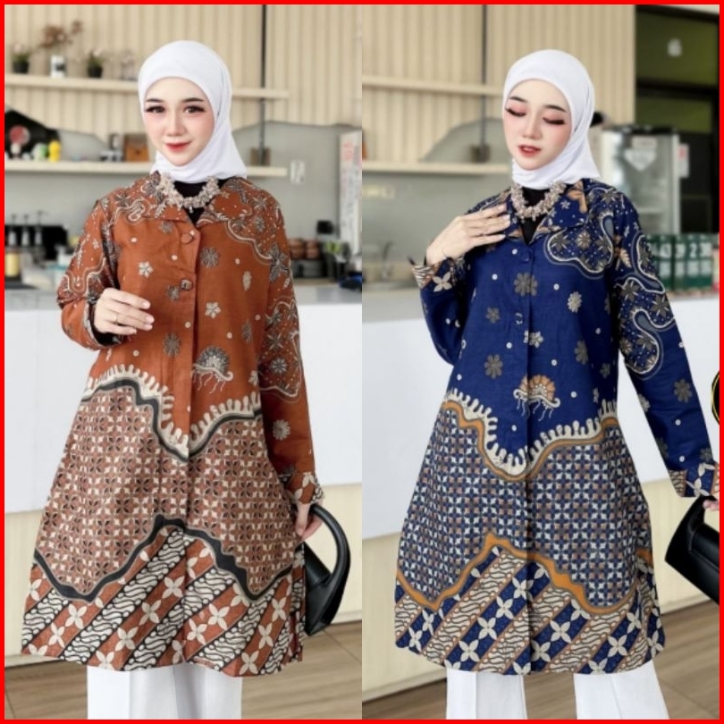 M-l-xl-xxl-jumbo Batik Tunik Wanita Asj Sa Hrb026 Kenongo Pekalongan Sogan Tulis