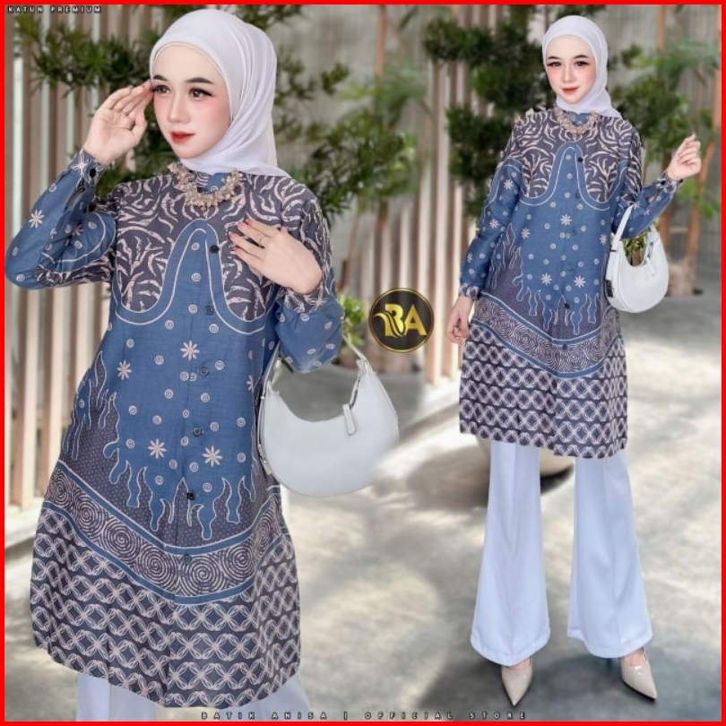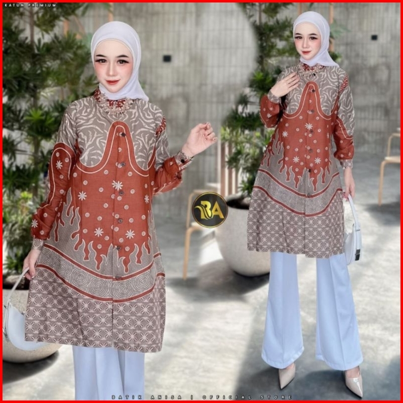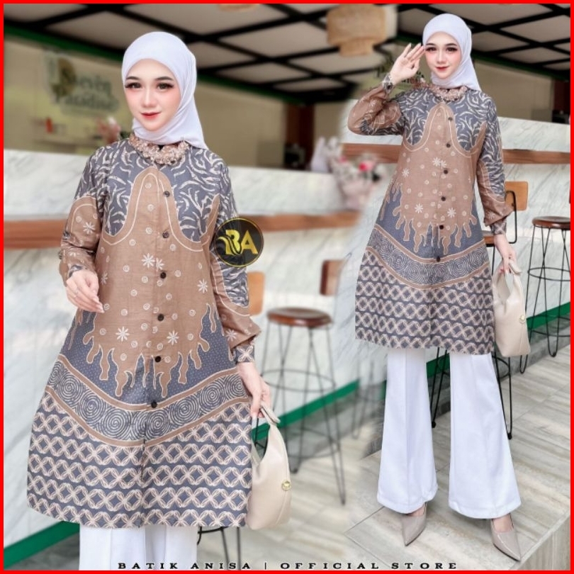 M-l-xl-xxl Batik Tunik Wanita Asj Sa Hrb026 Kenongo Pekalongan Sogan Tulis
