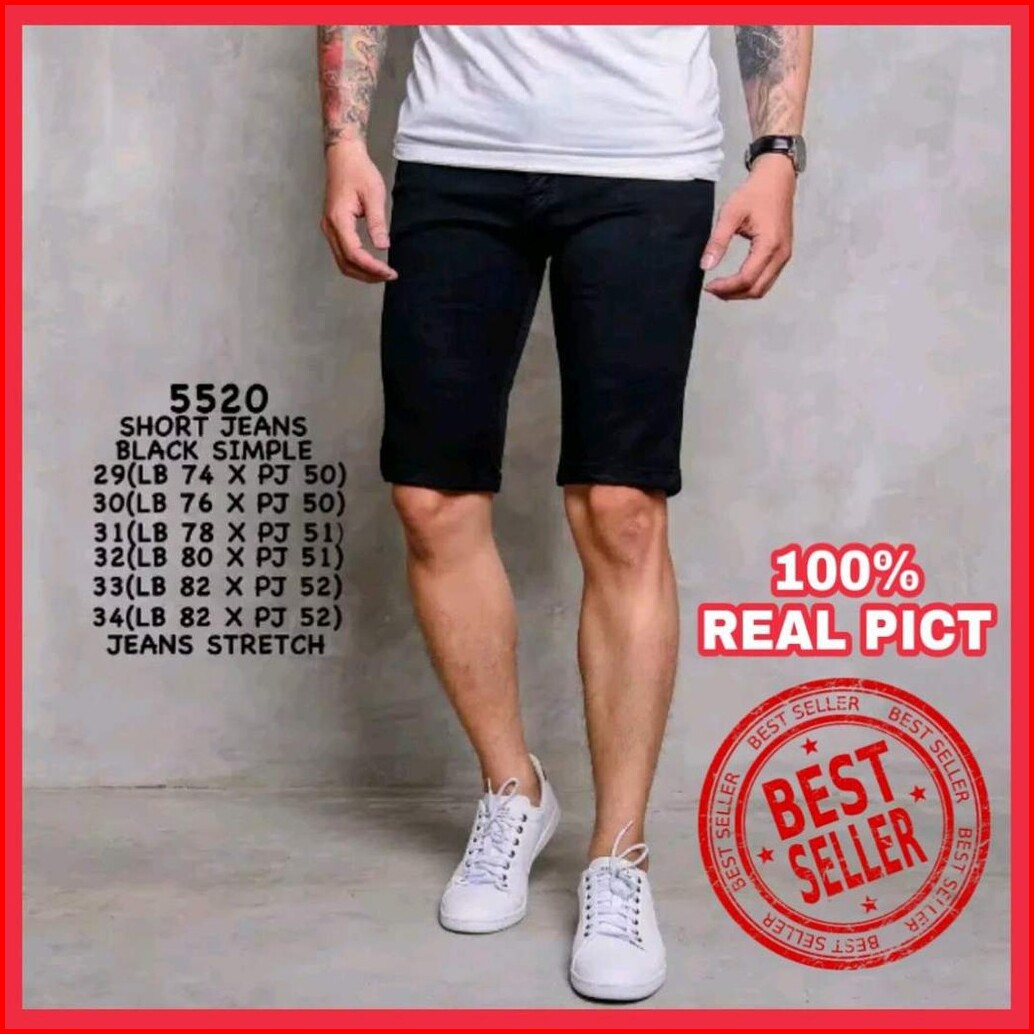 Celana Jeans Pendek Pria Hitam Ukuran 27 - 38