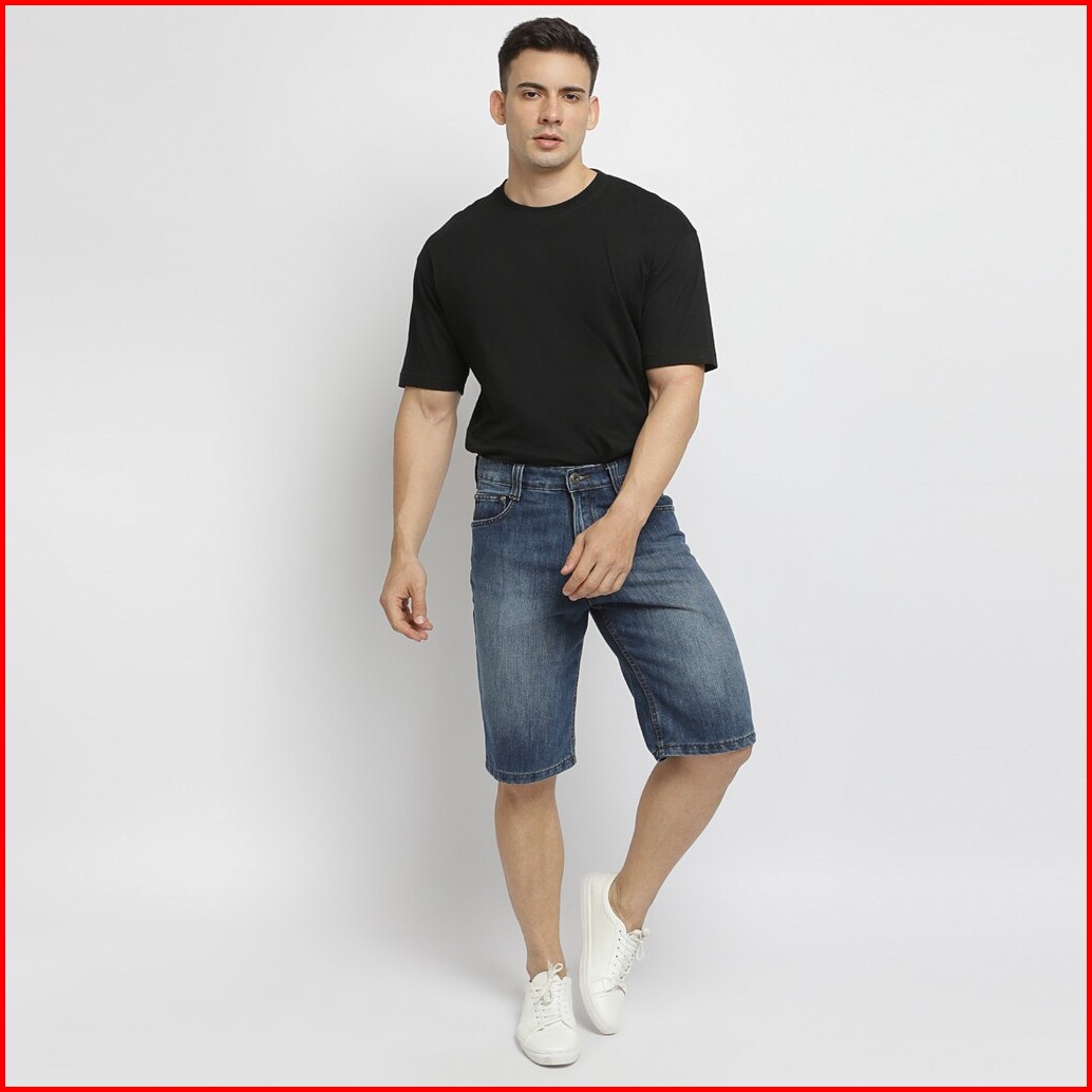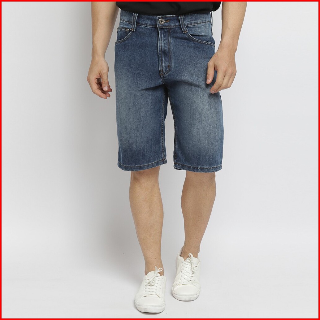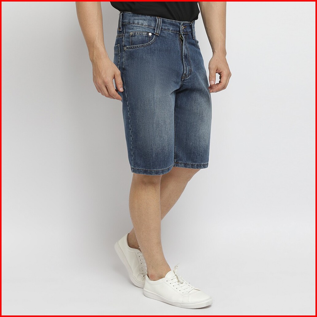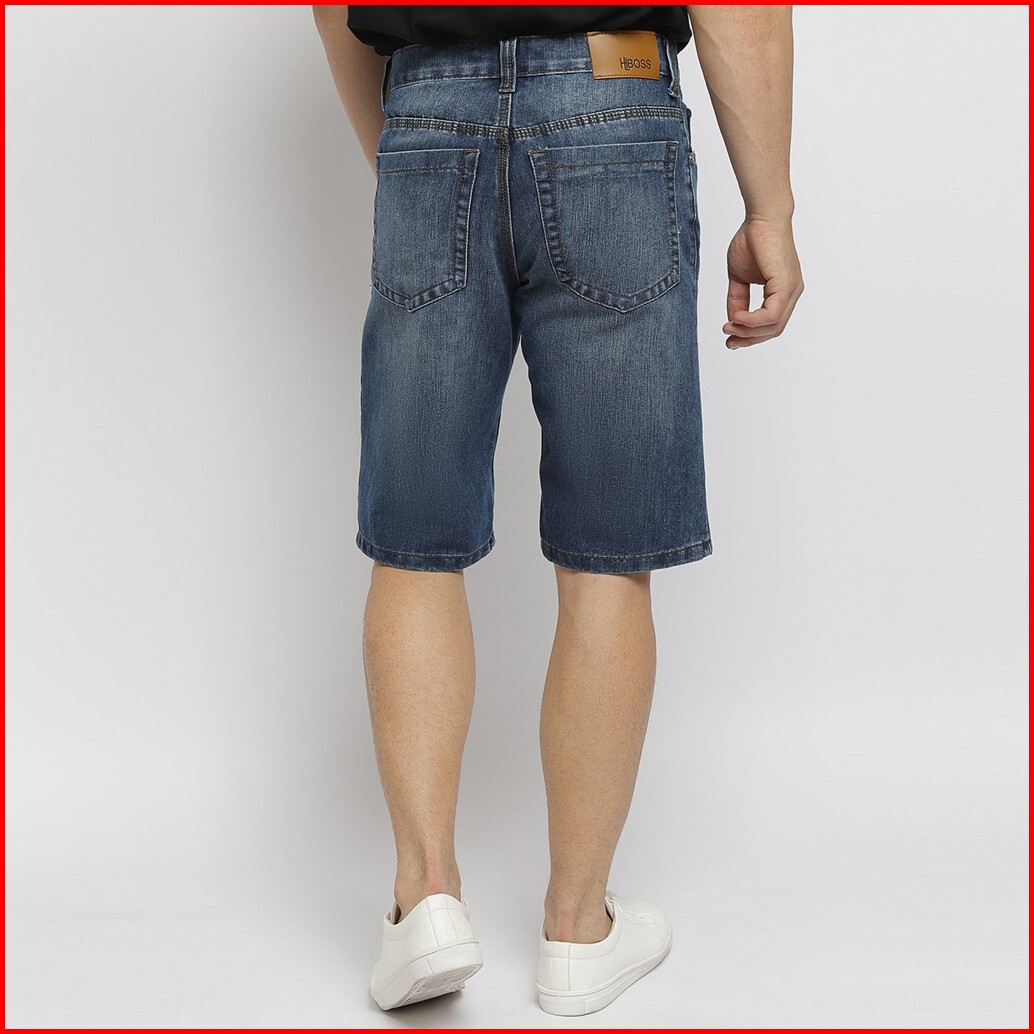 Hillboss Celana Jeans Pendek Pria Denim Non Stretch Sydney Washed Dark Blue - Short Pants Ns004