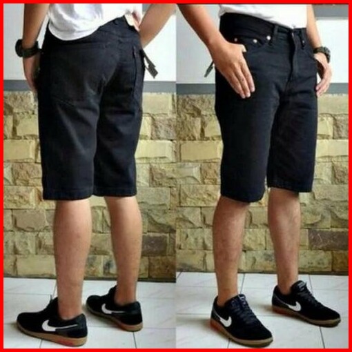 Celana Pendek Jeans Pria Jumbo Hitam Ukuran 39 - 44