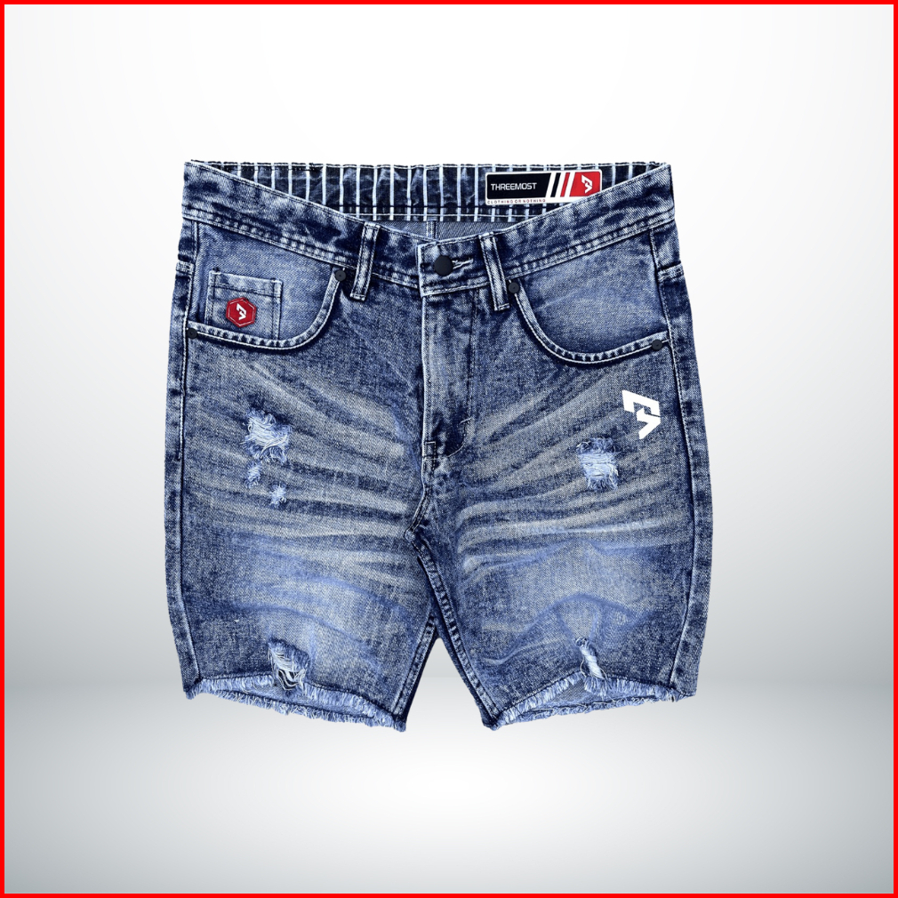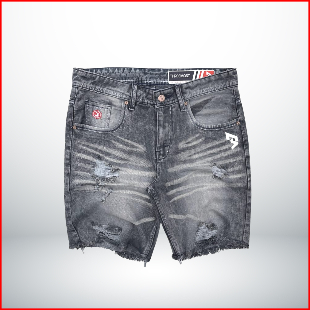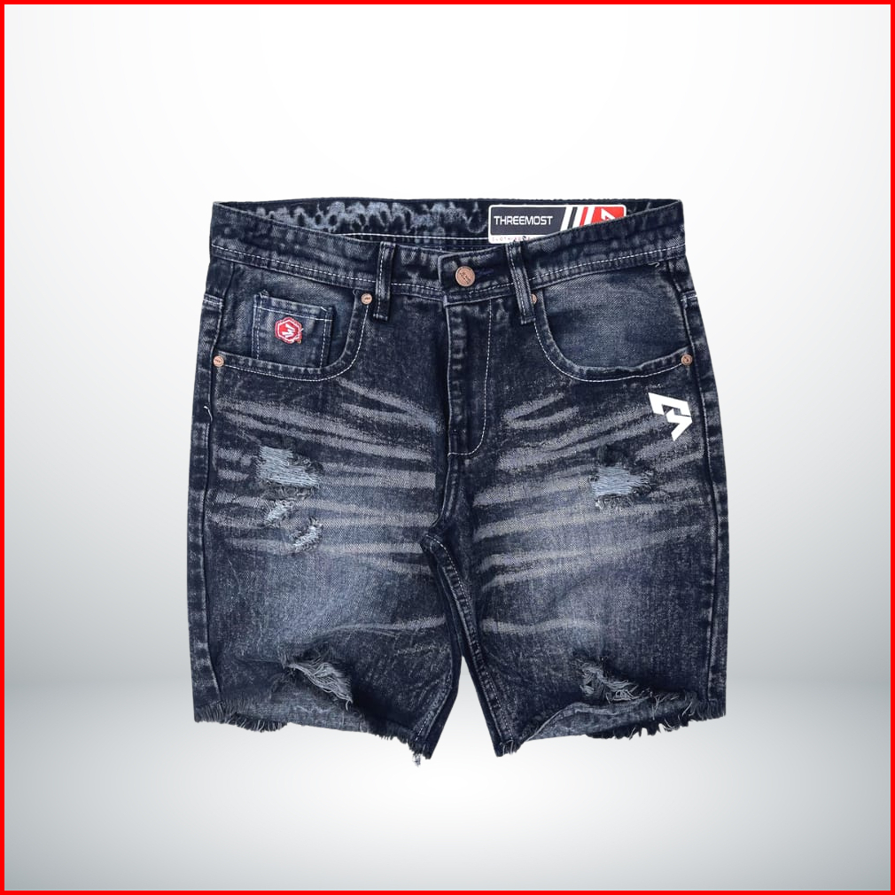 Celana Jeans Pendek Sobek Pria Snow Wash Ripped Premium