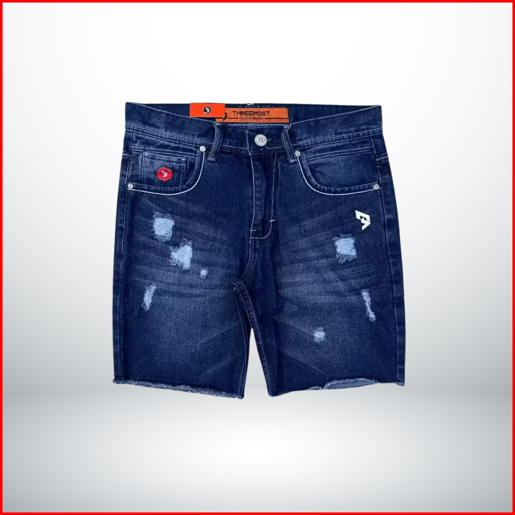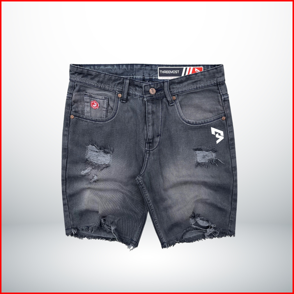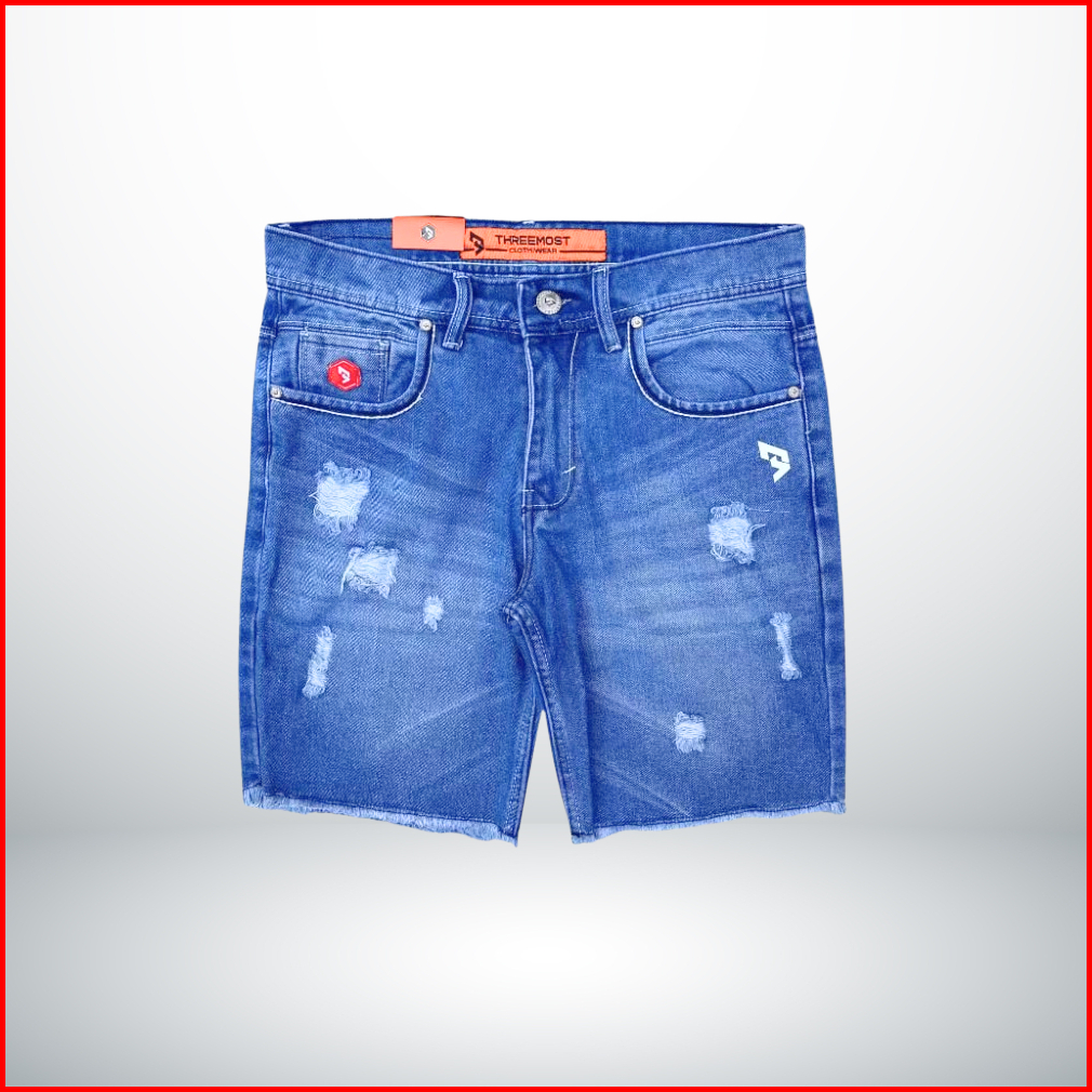Celana Jeans Pendek Sobek Pria Snow Wash Ripped Premium