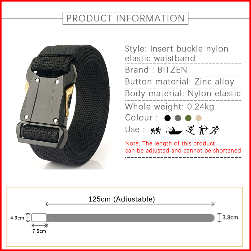 Bitzen Ikat Pinggang Pria Elastikitas Weaving Masukkan Gesper Priataktis Nylon Sabuk Pinggang Pria
