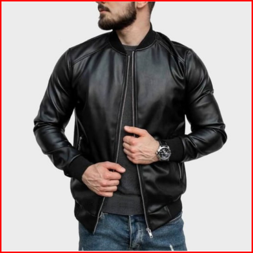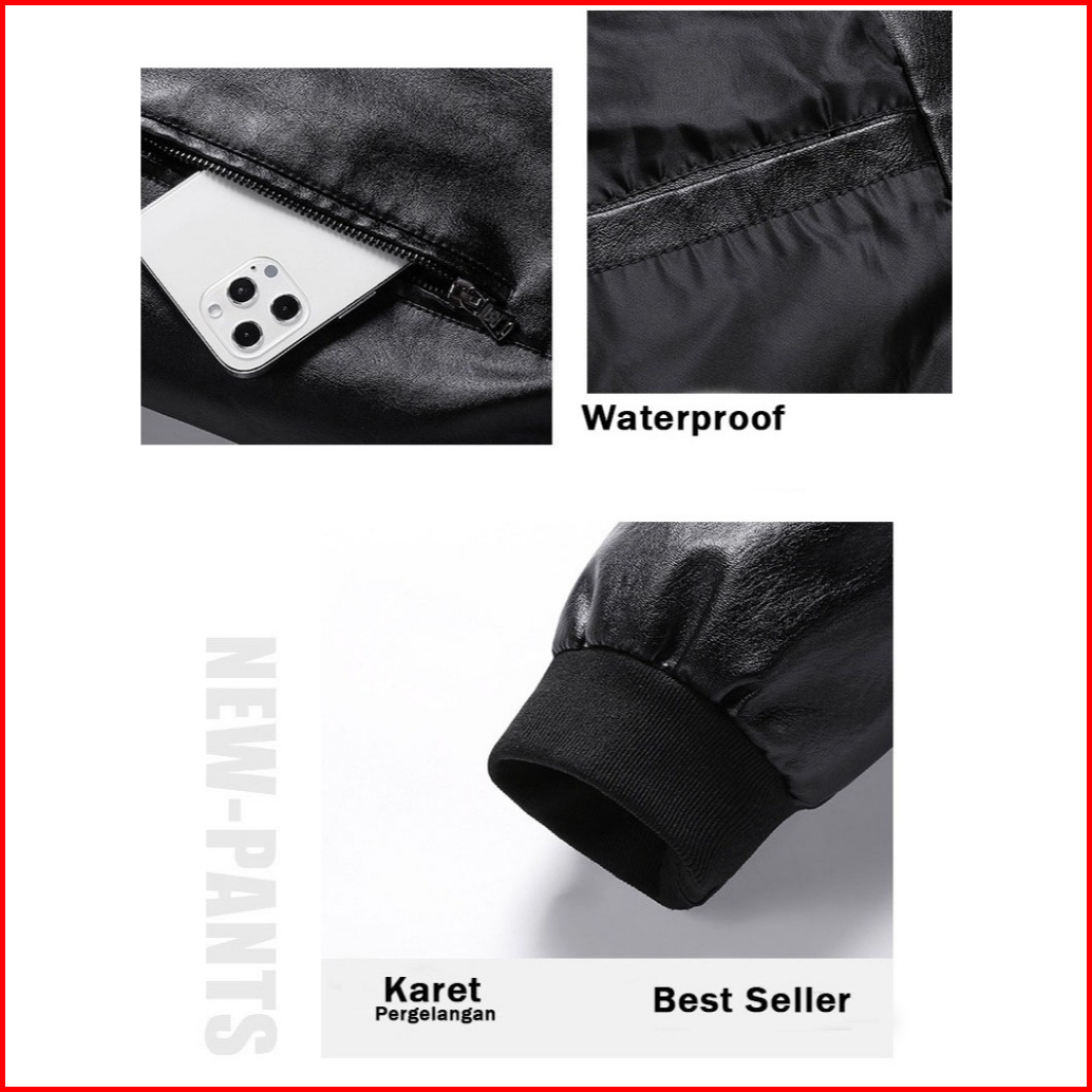 Jaket Kulit Pria Jaket Motor Tebal Waterproof Jaket Touring Hitam Zipper M - Xxl
