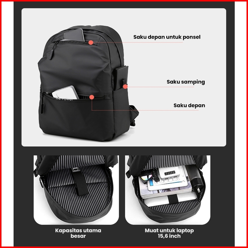 Freeknight Tas Ransel Pria Polos Laptop Backpack Waterproof Tas Sekolah Pria Punggung Trendy Tr715