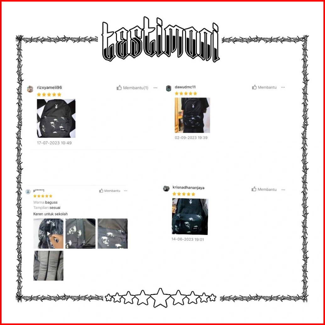 Vampire Kingdom Bagpack Basic Printed Tas Ransel Backpack Hitam Tas Sekolah Distro Cowok Black Skull Black
