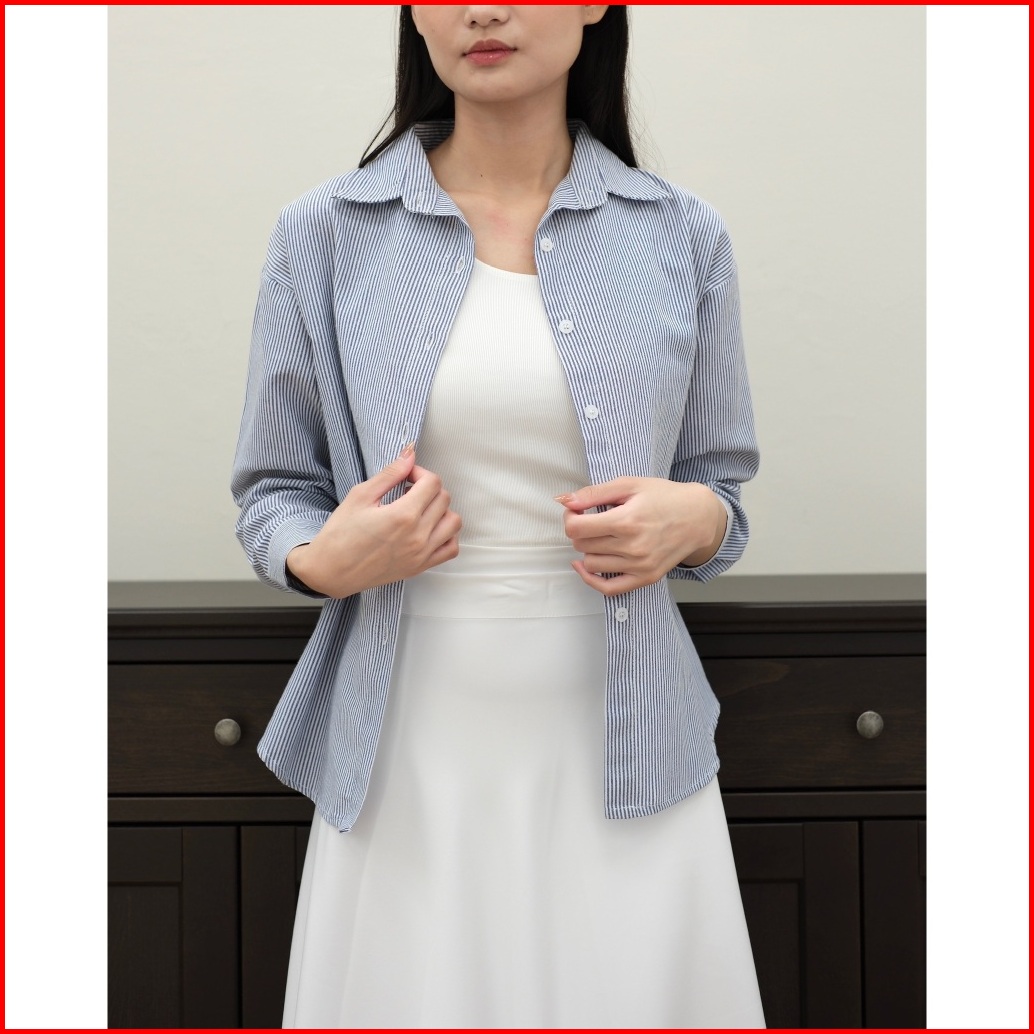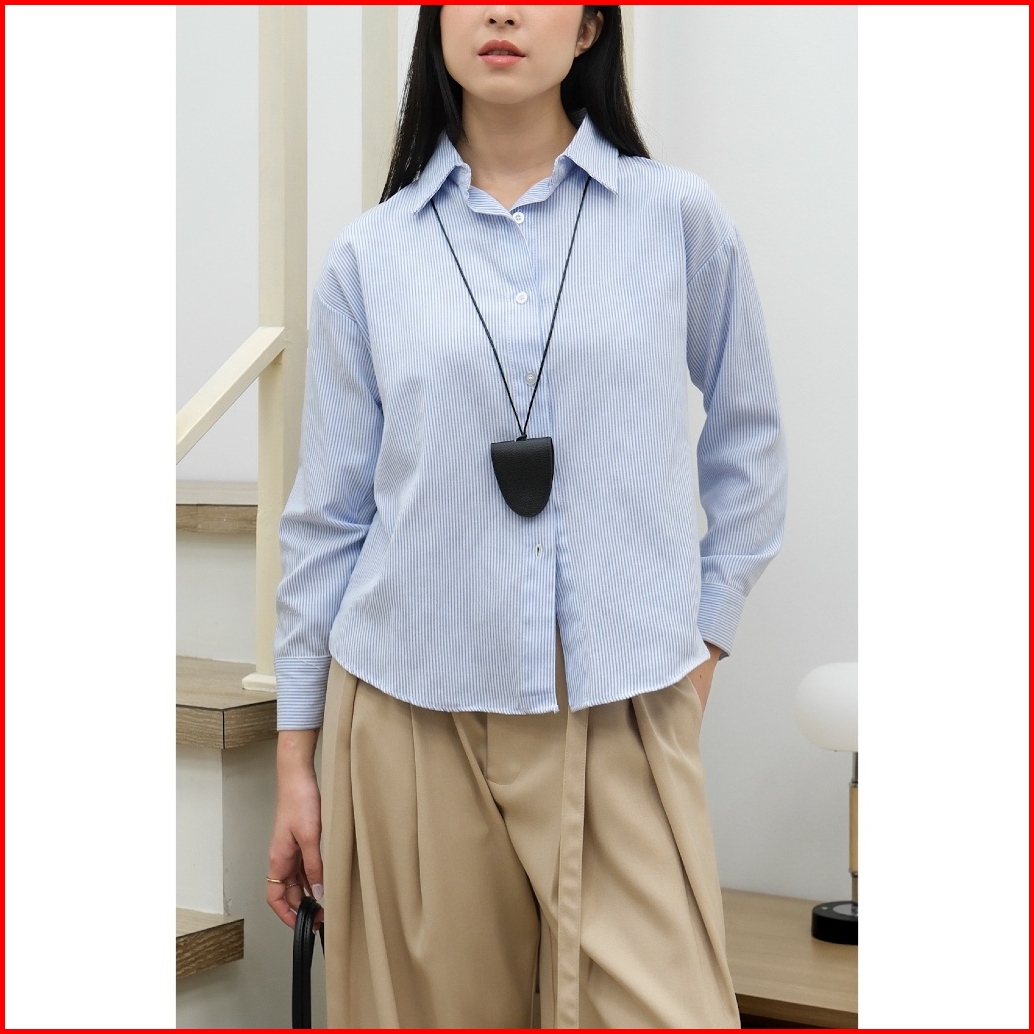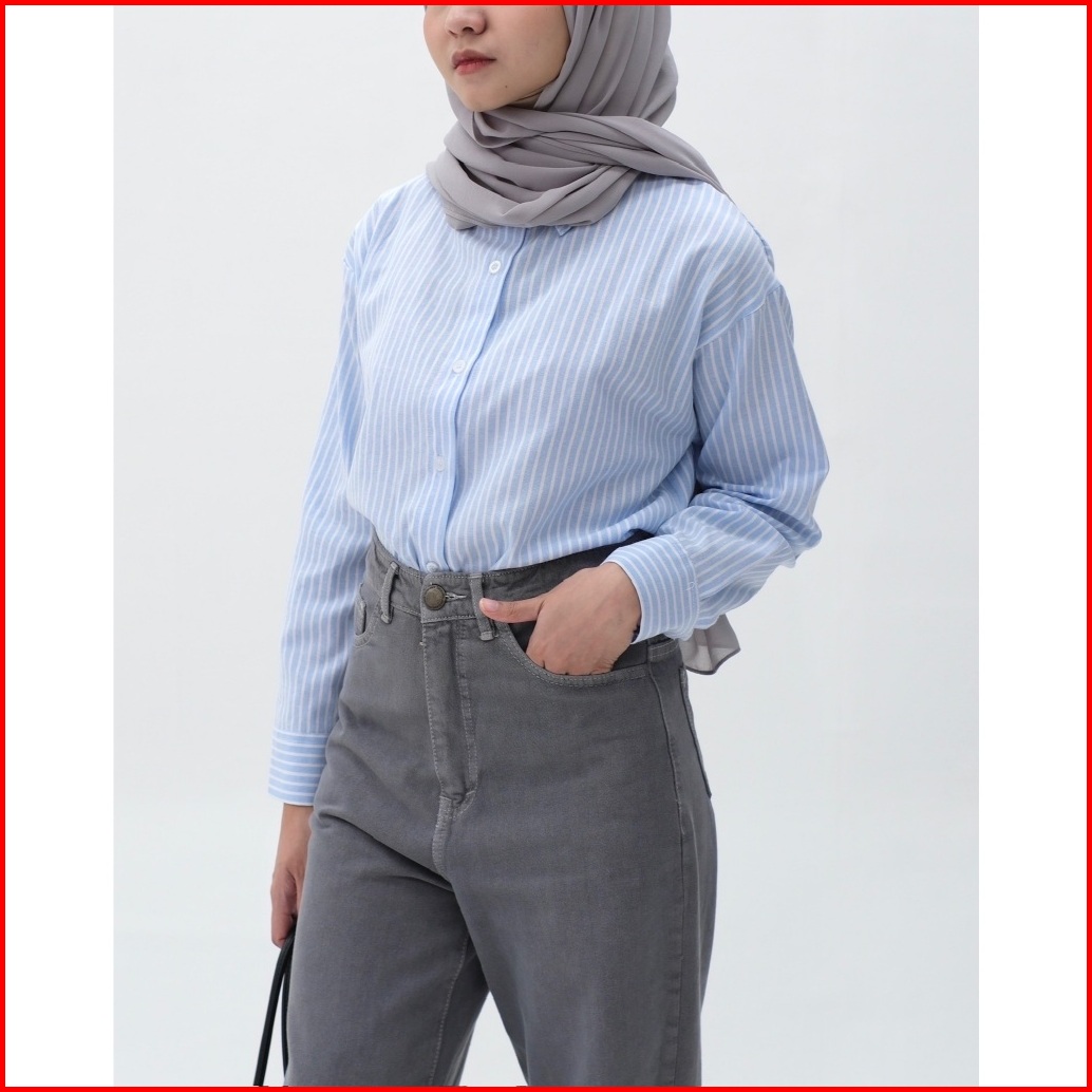 Kemeja Salur Wanita Hanni Striped Shirt Hulm