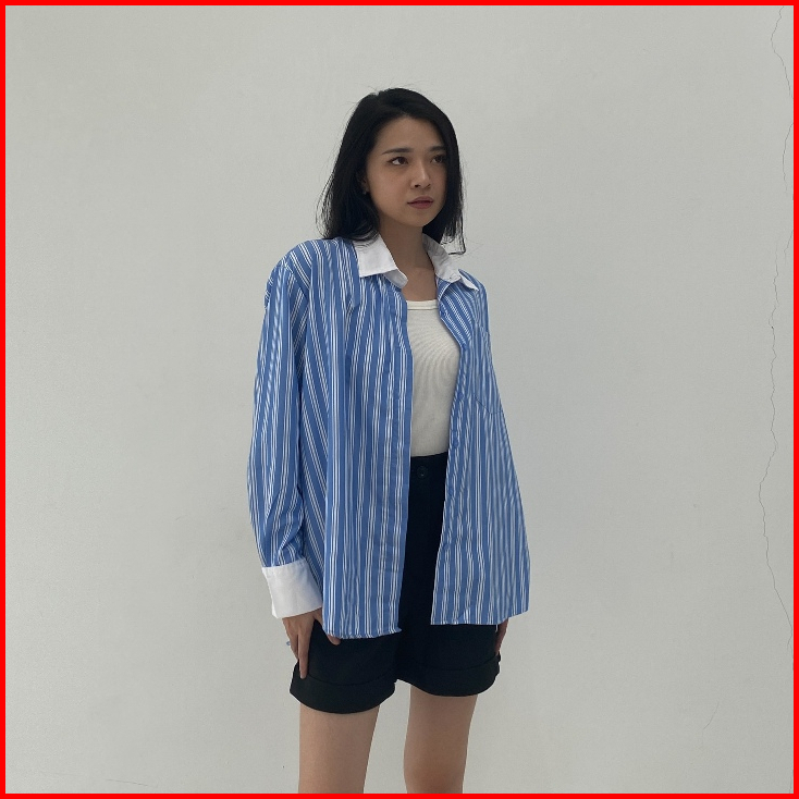Diskon Clearance Sale Cuci Gudang Days Andria Stripe Shirt Oversize Shirt Kemeja Salur Kemeja Oversize Wanita Kemeja Wan